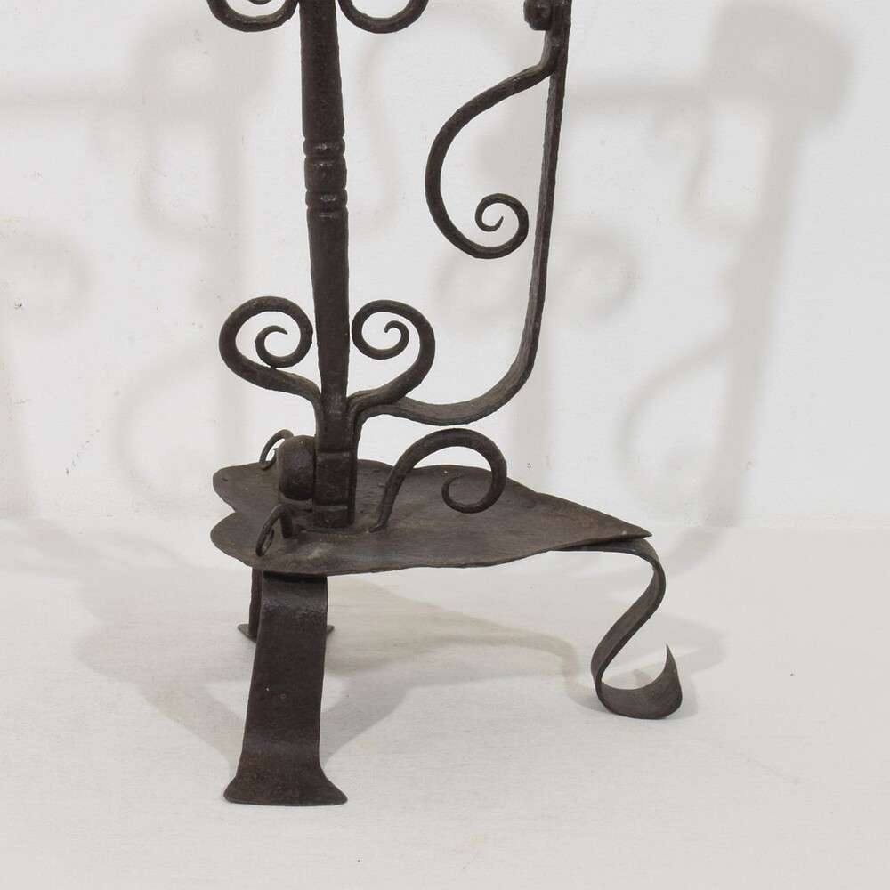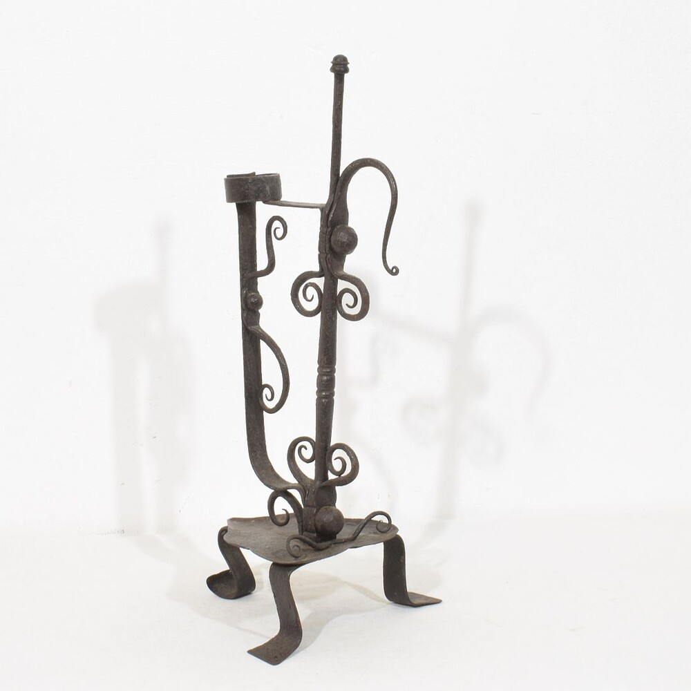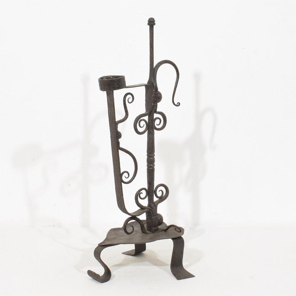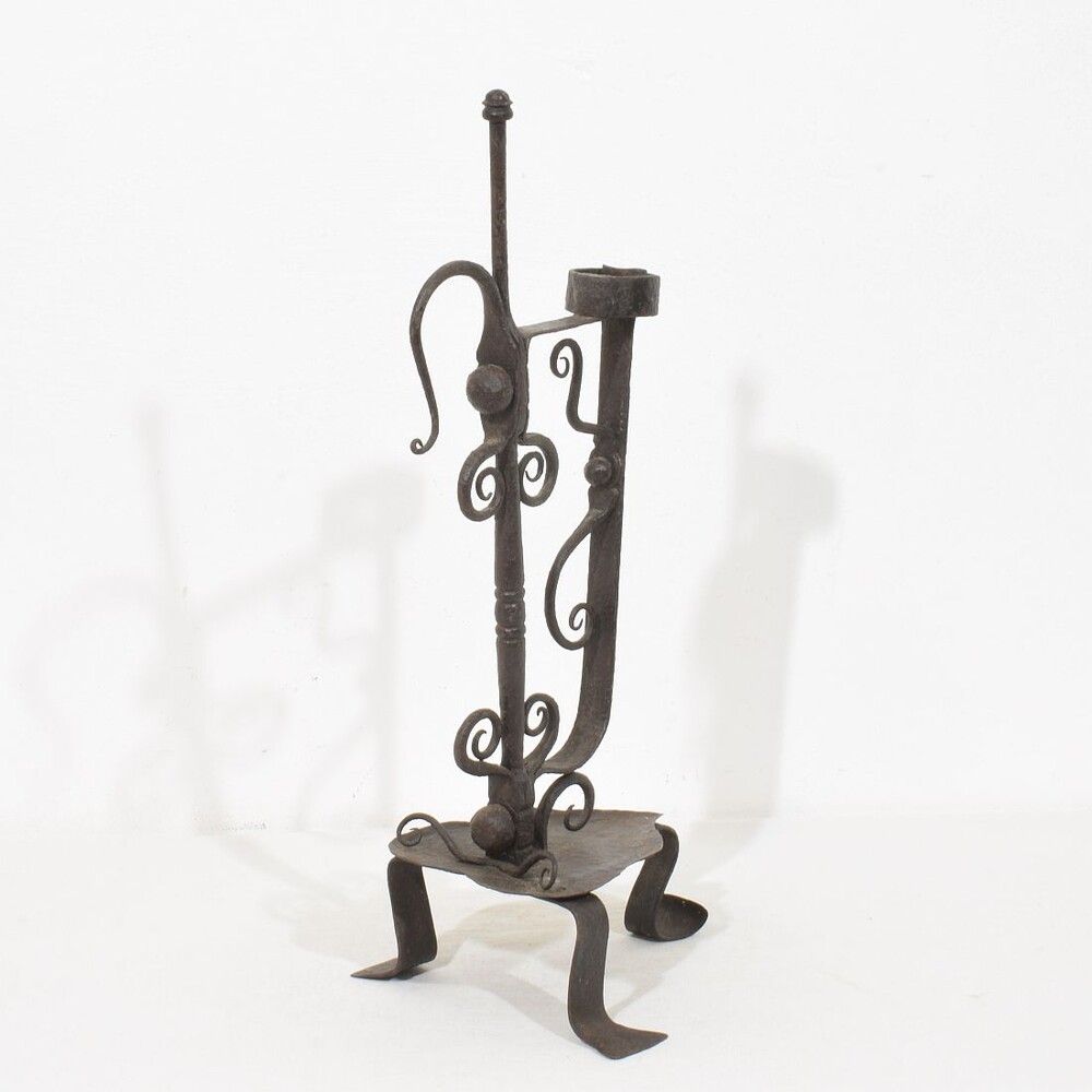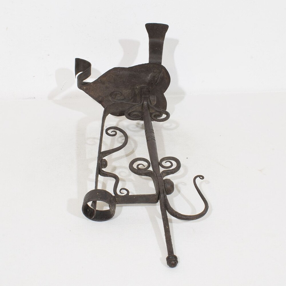 Large wrought iron rat de cave candleholder, Normandie, France, 18th century. Weathered. for sale in Candleholders & Lighting | Tresors Trouves