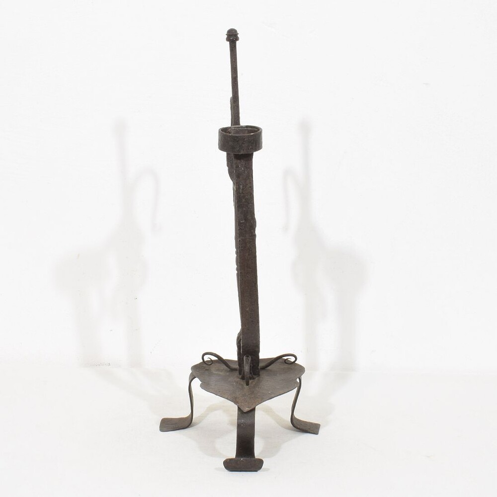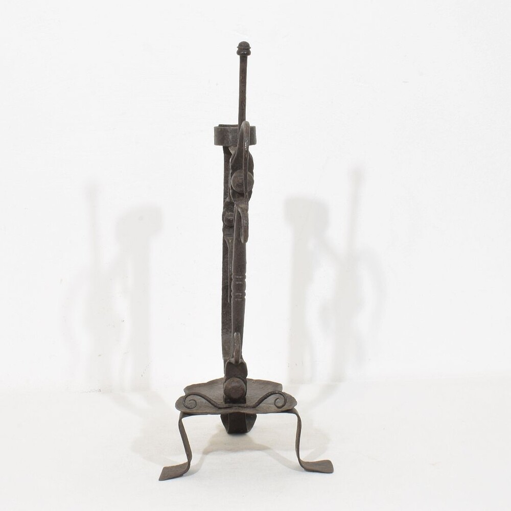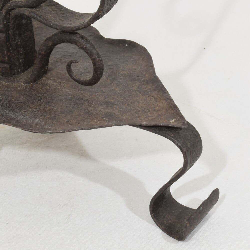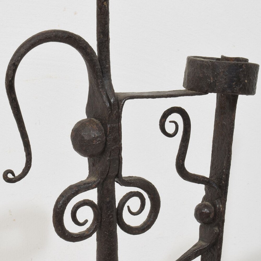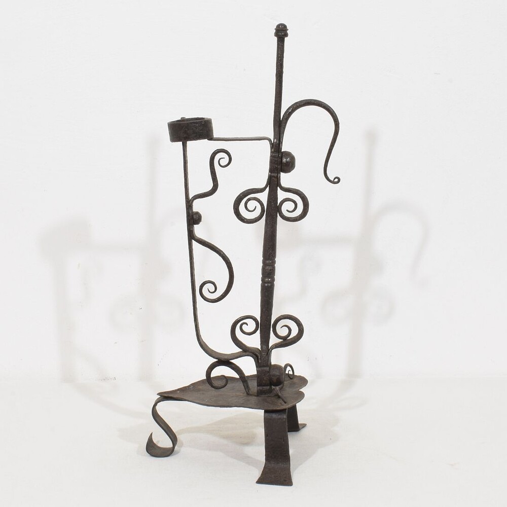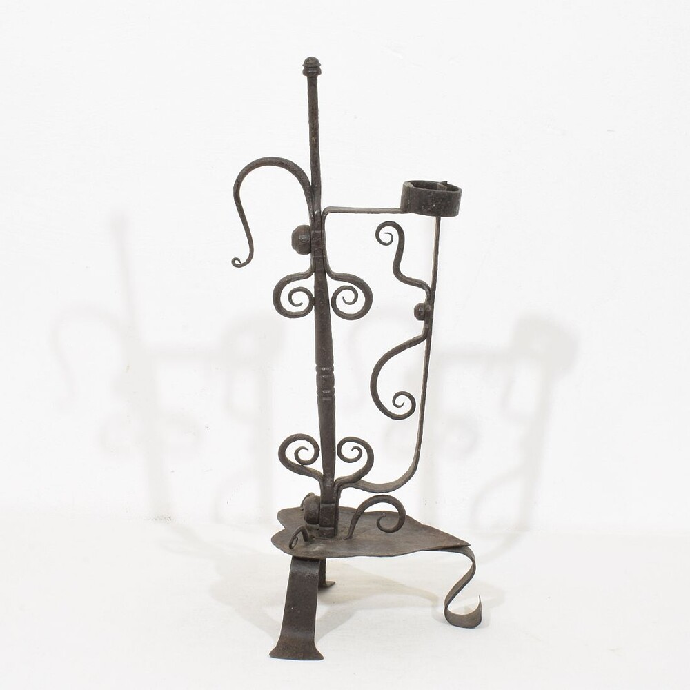 Large wrought iron rat de cave candleholder, Normandie, France, 18th century. Weathered. for sale in Candleholders & Lighting | Tresors Trouves