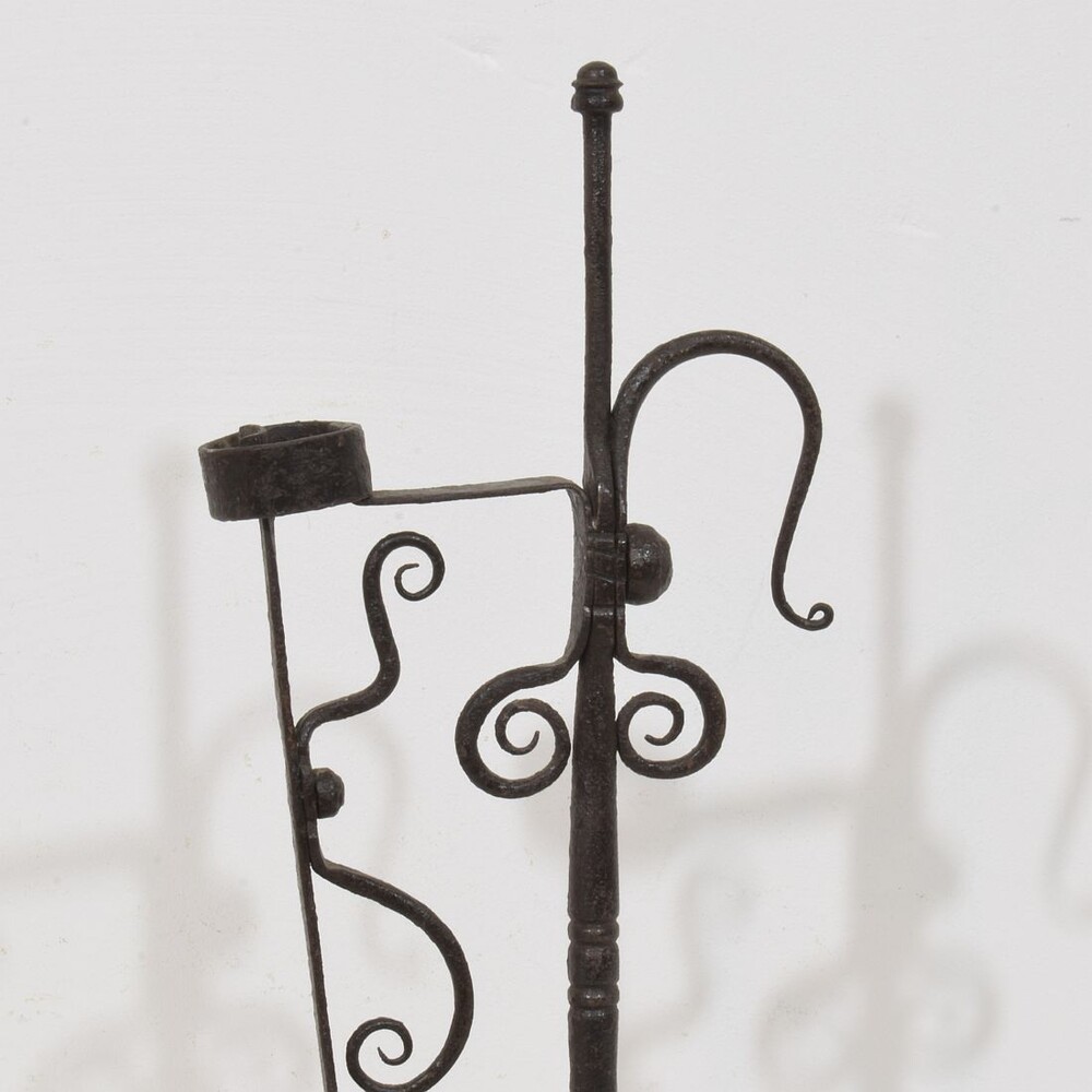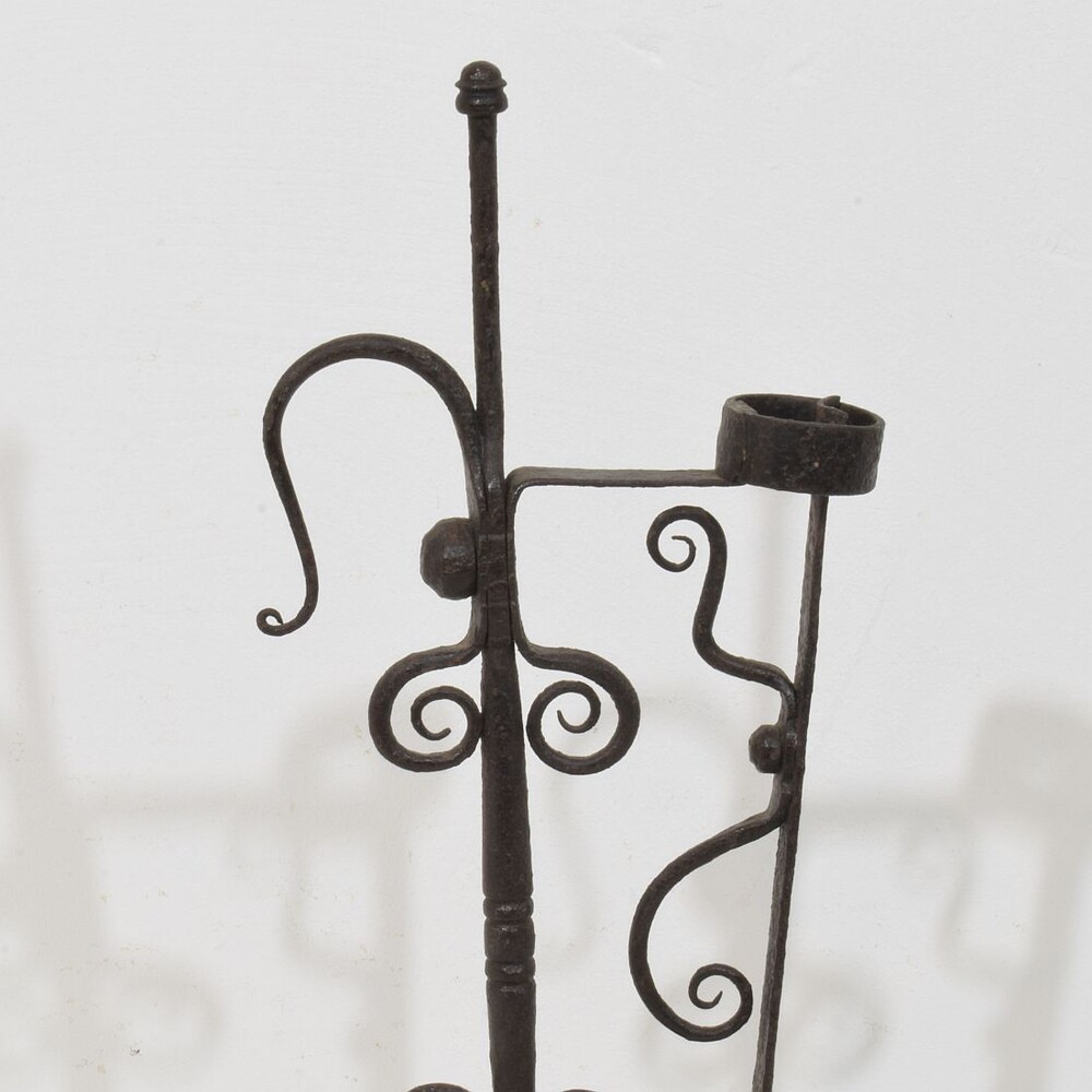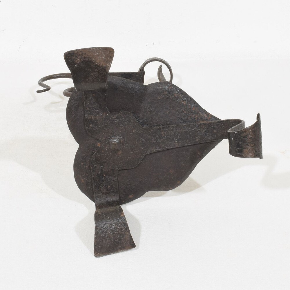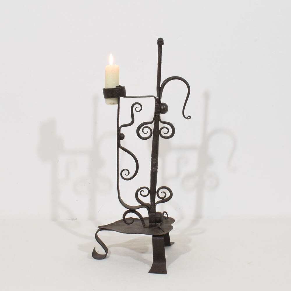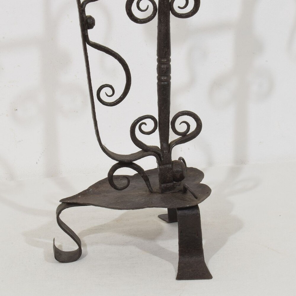 Large wrought iron rat de cave candleholder, Normandie, France, 18th century. Weathered. for sale in Candleholders & Lighting | Tresors Trouves