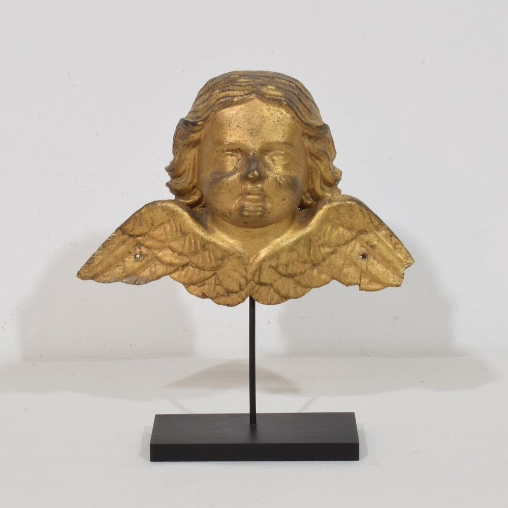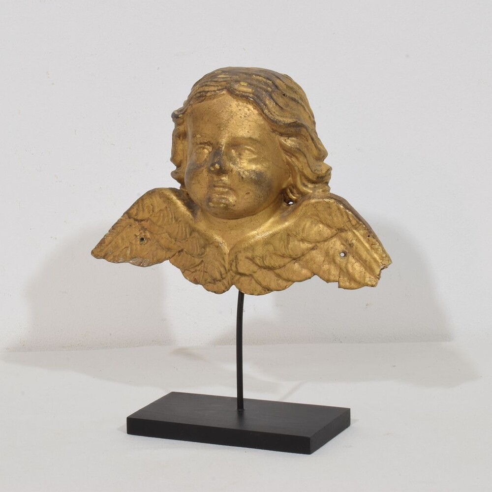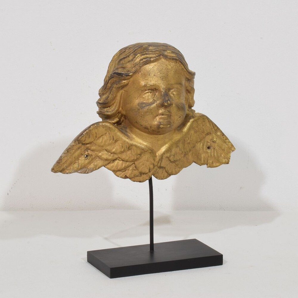 Beautiful weathered giltwood winged angel head,