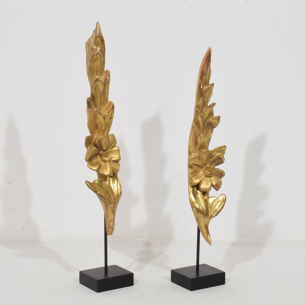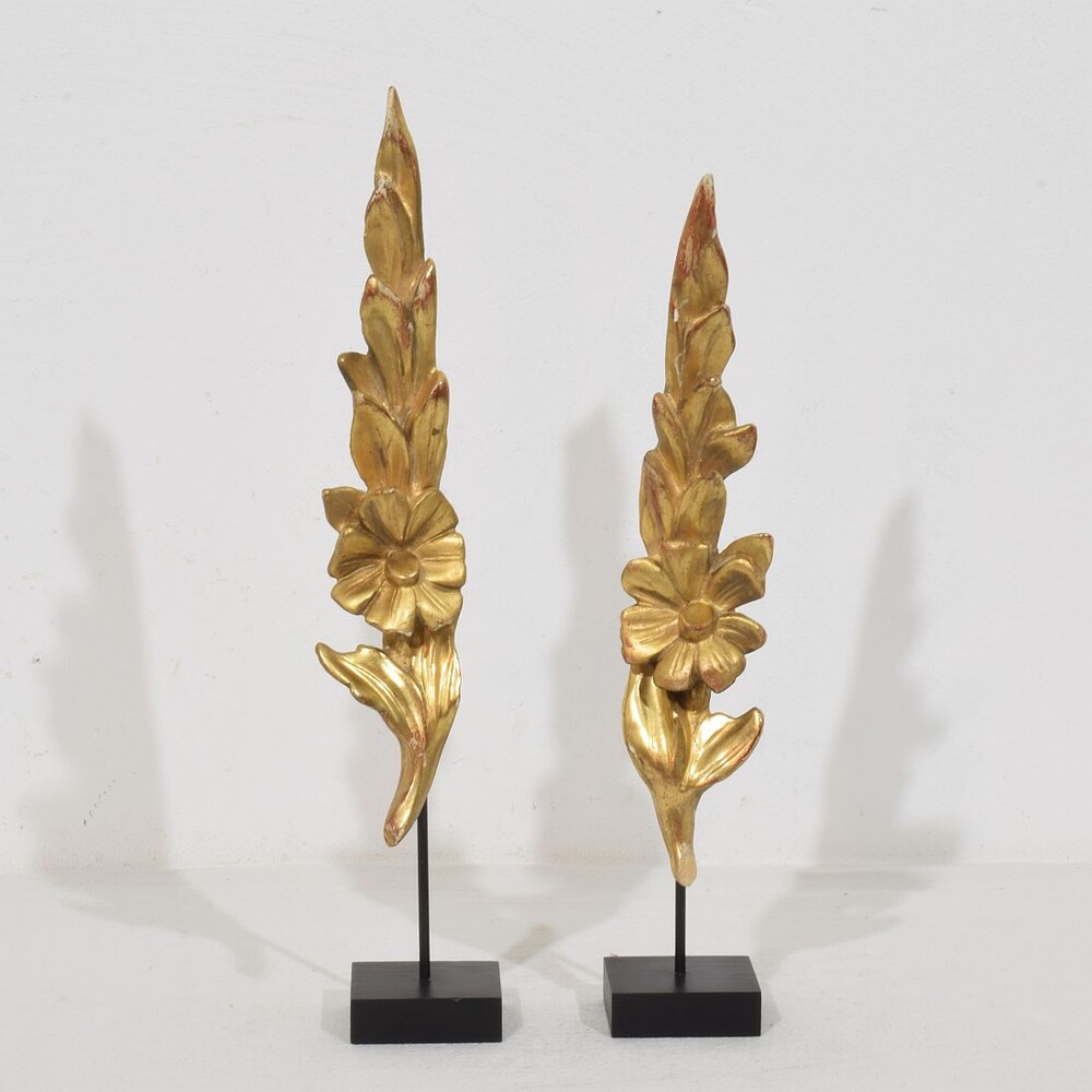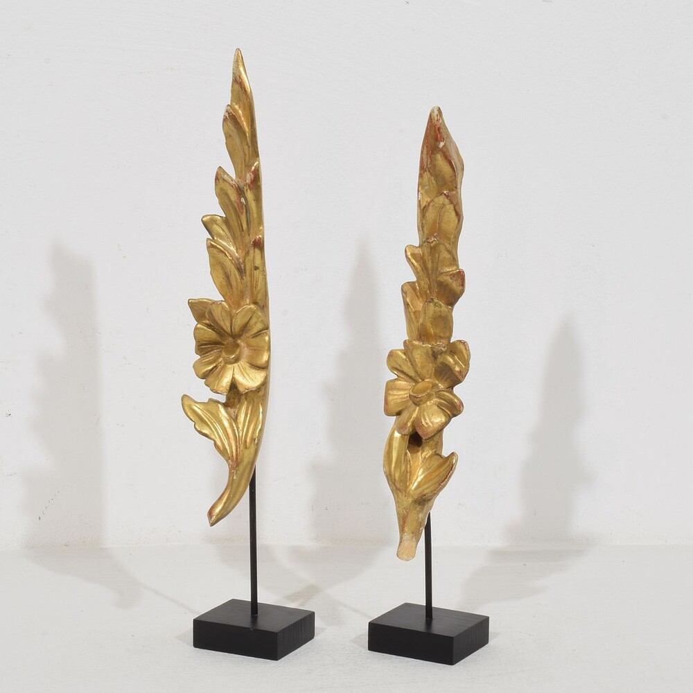 Nice couple of two small gilded Baroque style wooden ornaments,