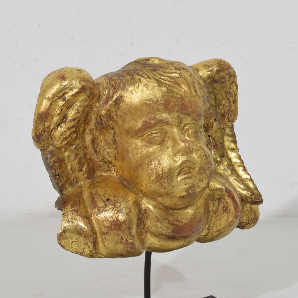 18th Century Italian Baroque Carved Giltwood Angel Head on Wings