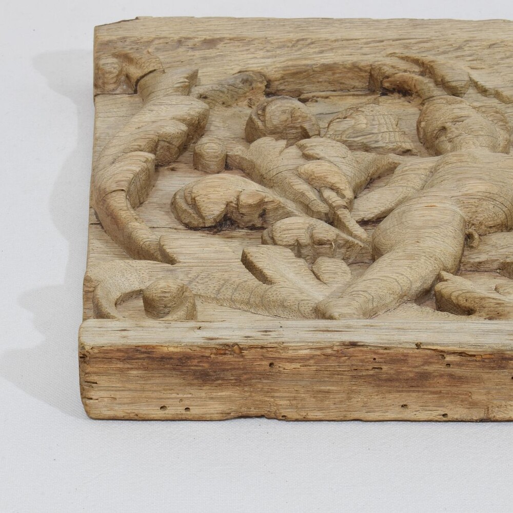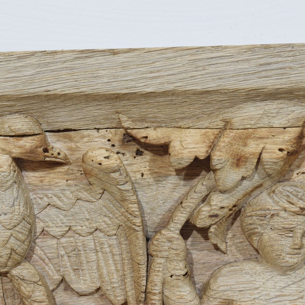 18th Century French Carved Oak Panel Depicting Two Angels And An Eagle