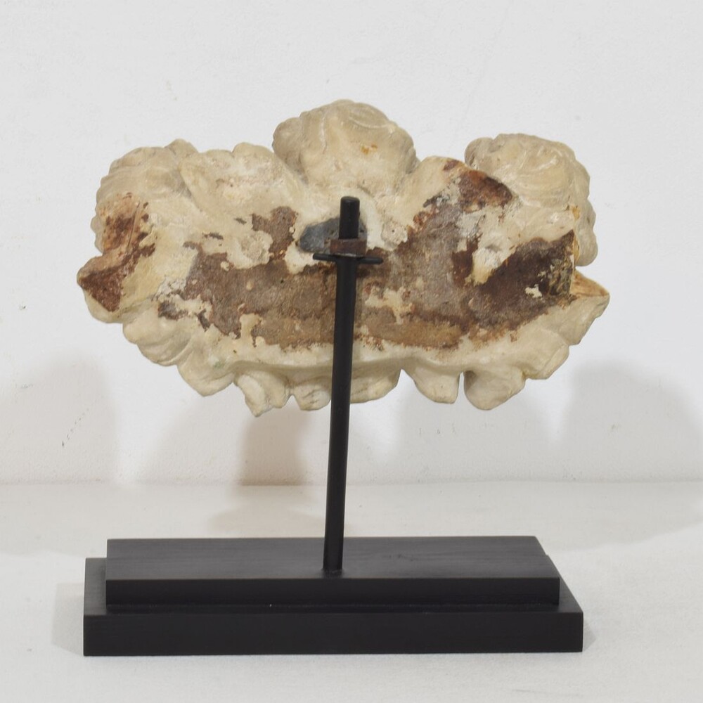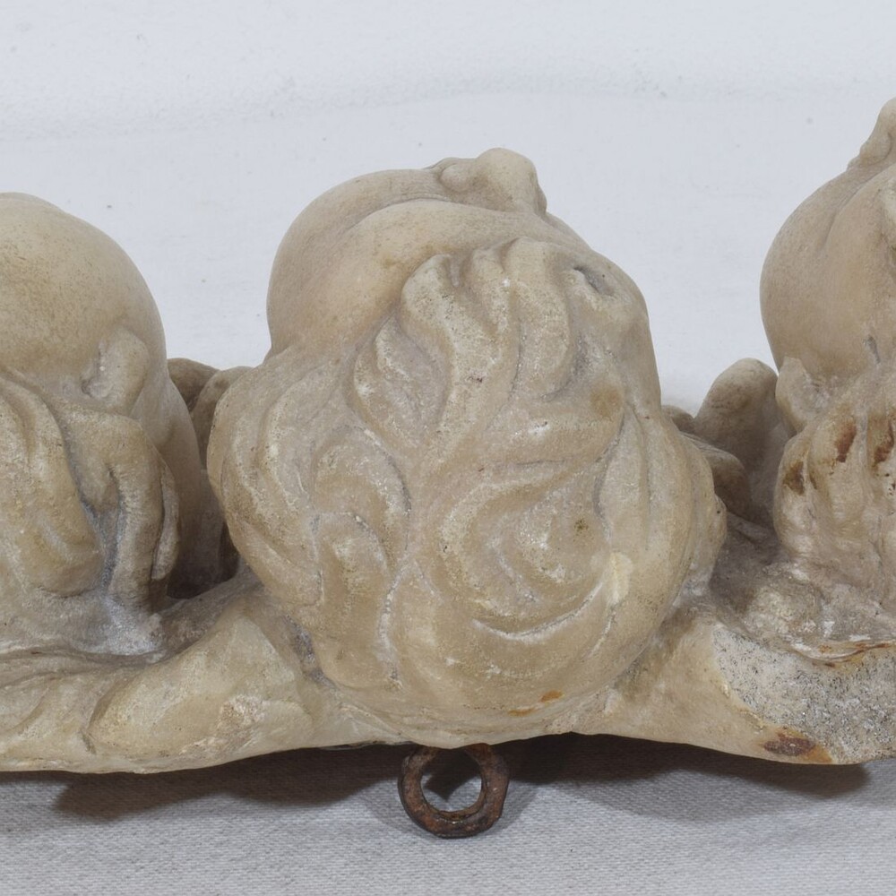 Beautiful and unique handcarved white marble winged angel heads ornament that most likely once adorned the interior of a church or chapel