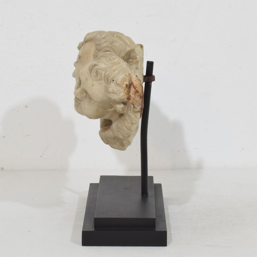 Italian, 17th / 18th Century Carved White Marble Winged Angel Heads Ornament