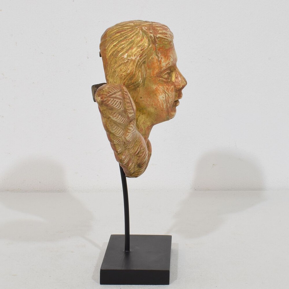 Beautiful weathered giltwood winged angel head,