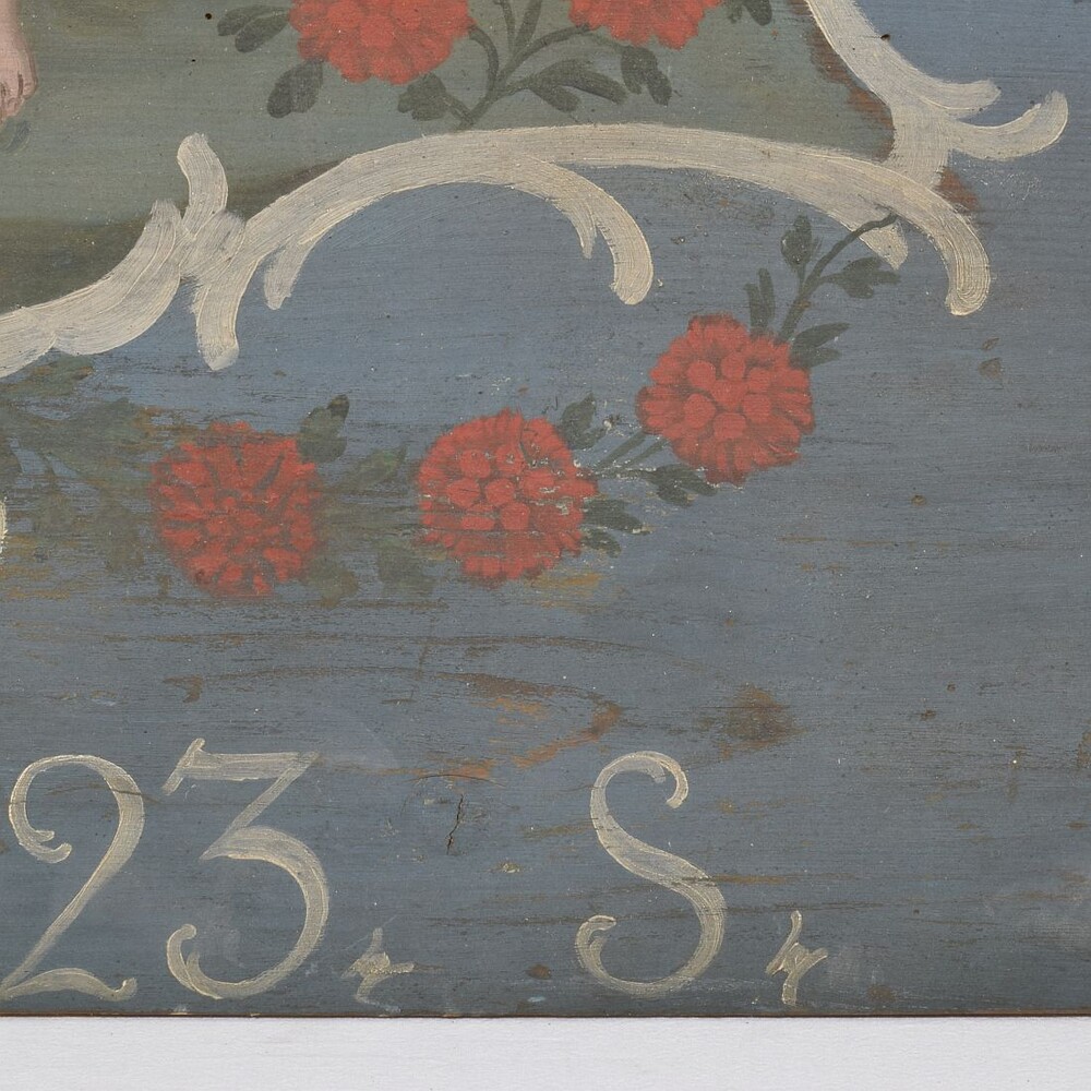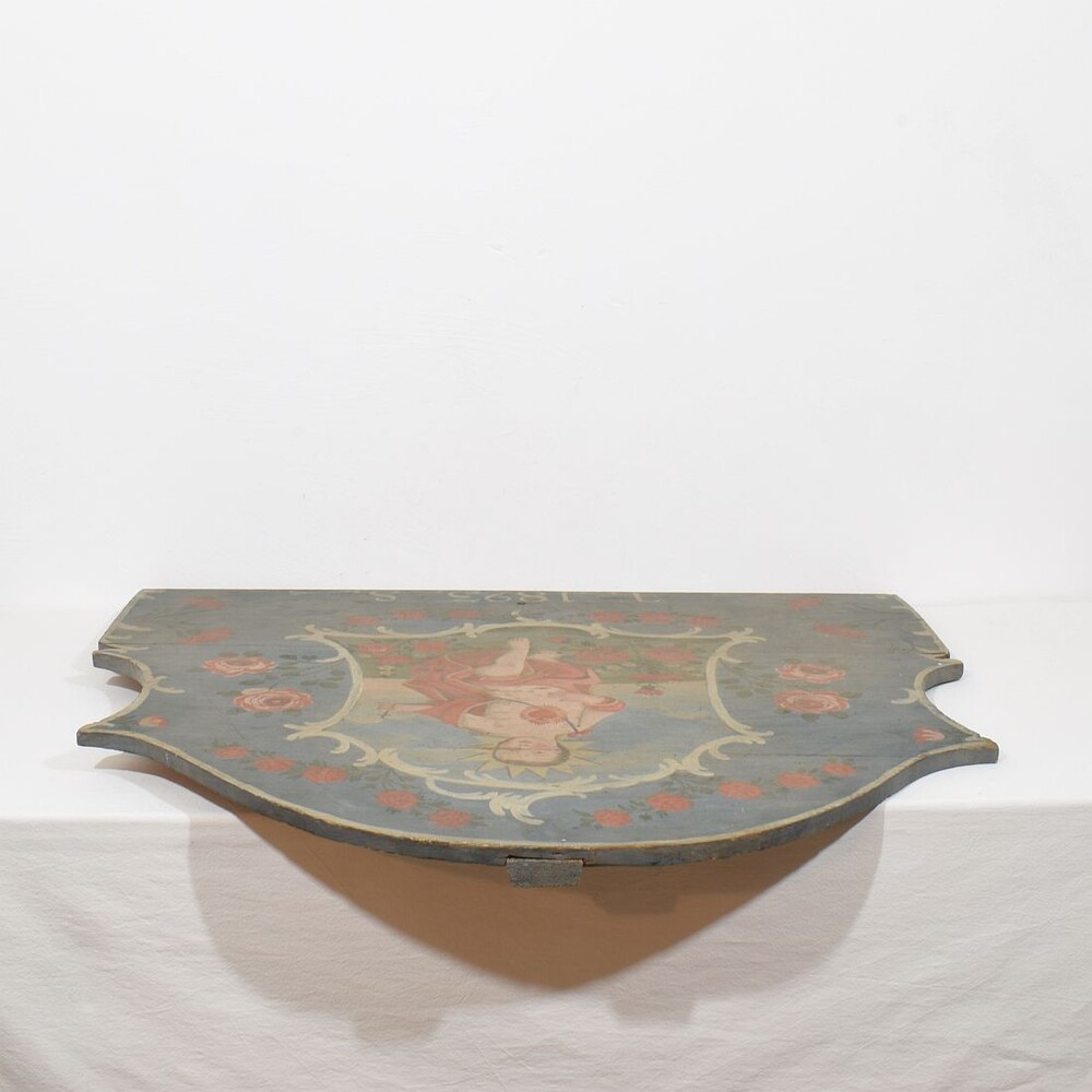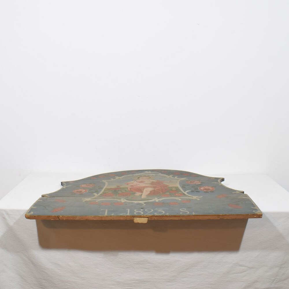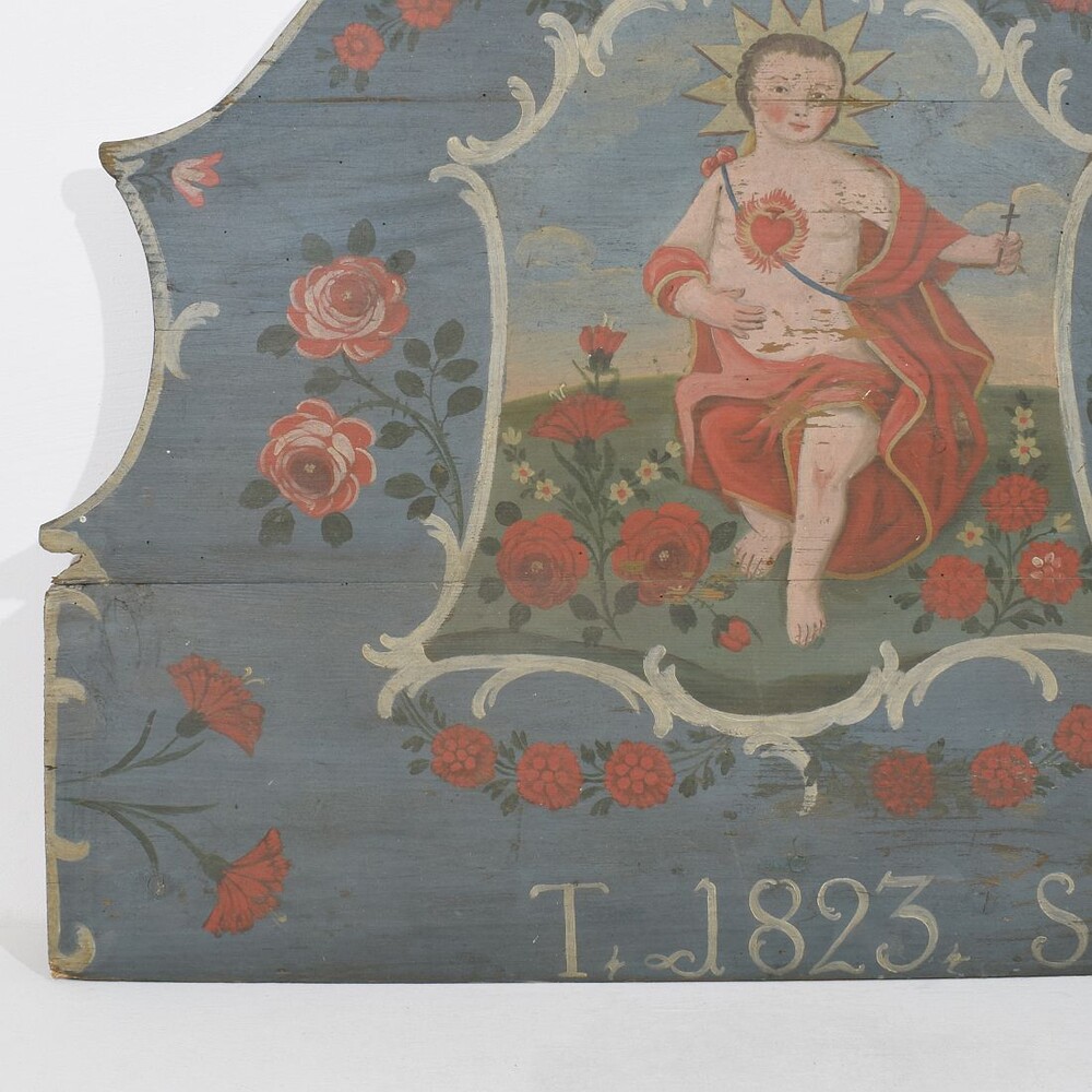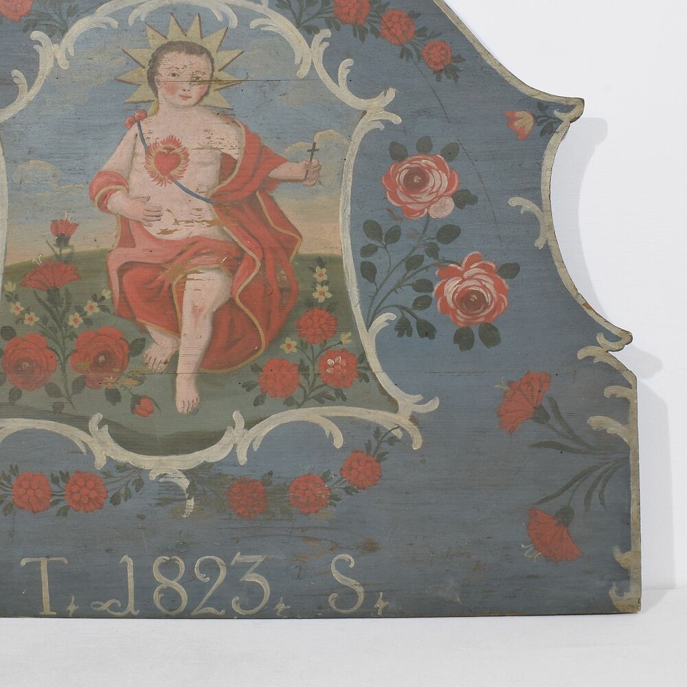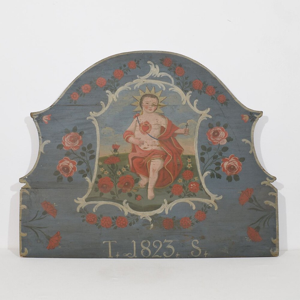 19th Century French Folk Art Painted Wooden Panel With Baby Christ Figure