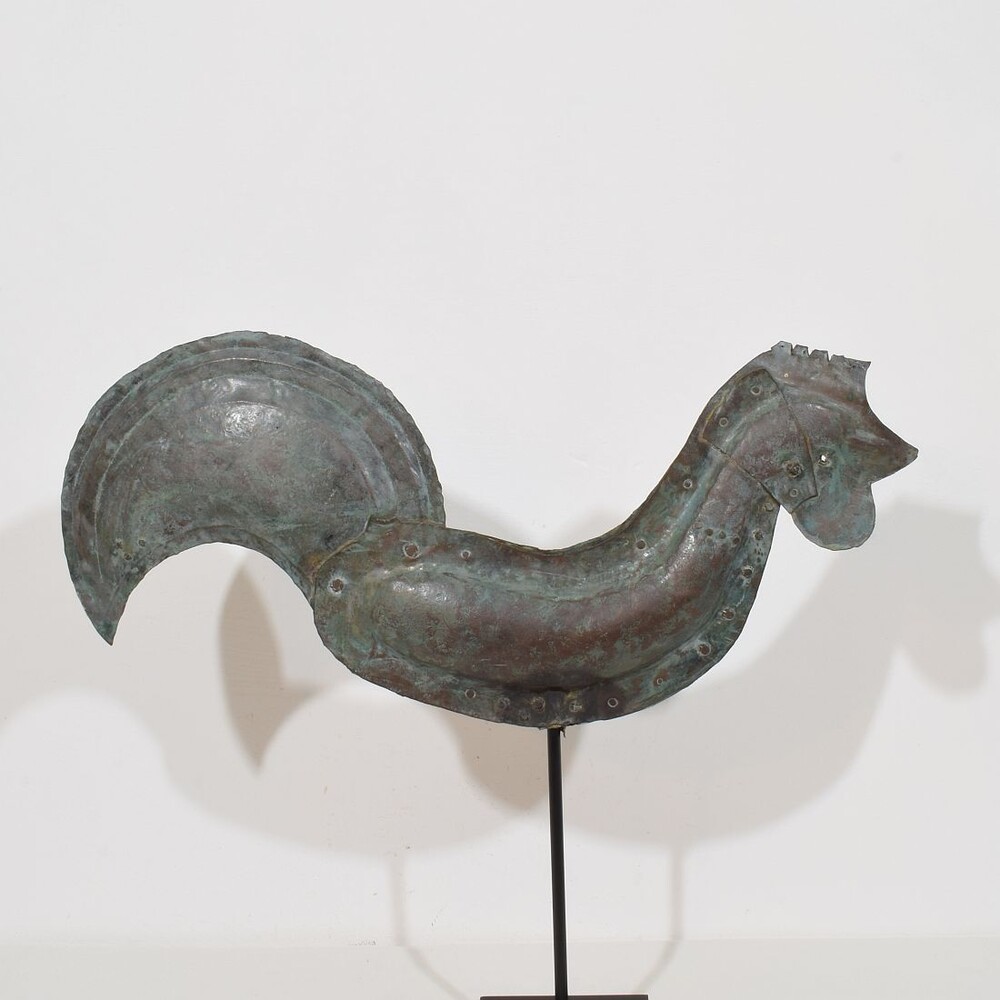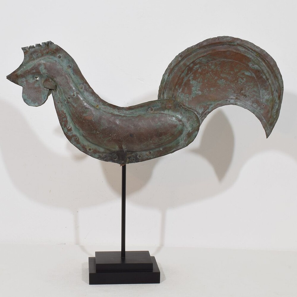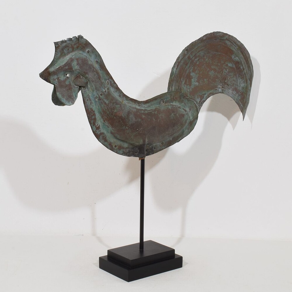 Beautiful and rare antique folk art copper rooster with an wonderful vert de gris patine. A real unique find.