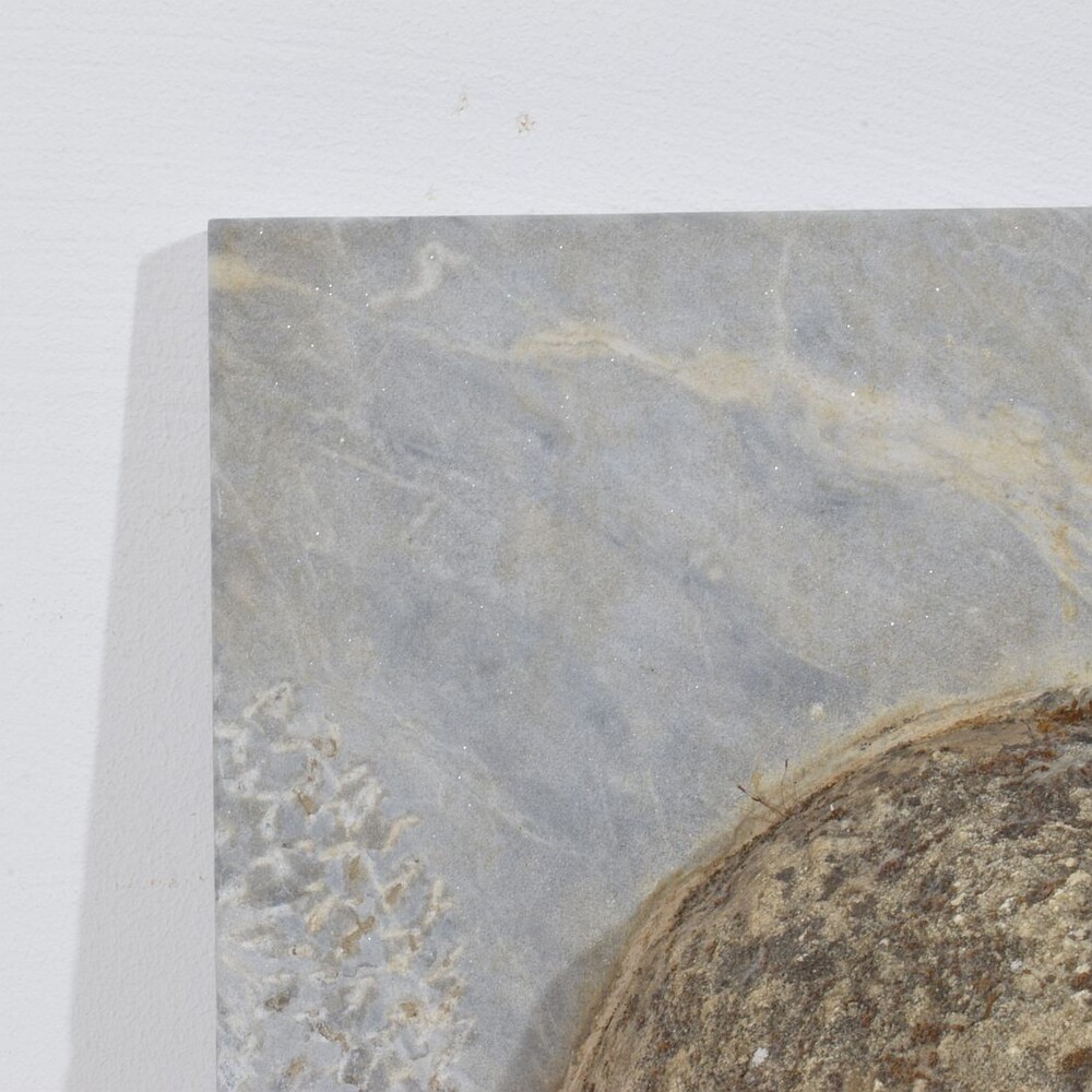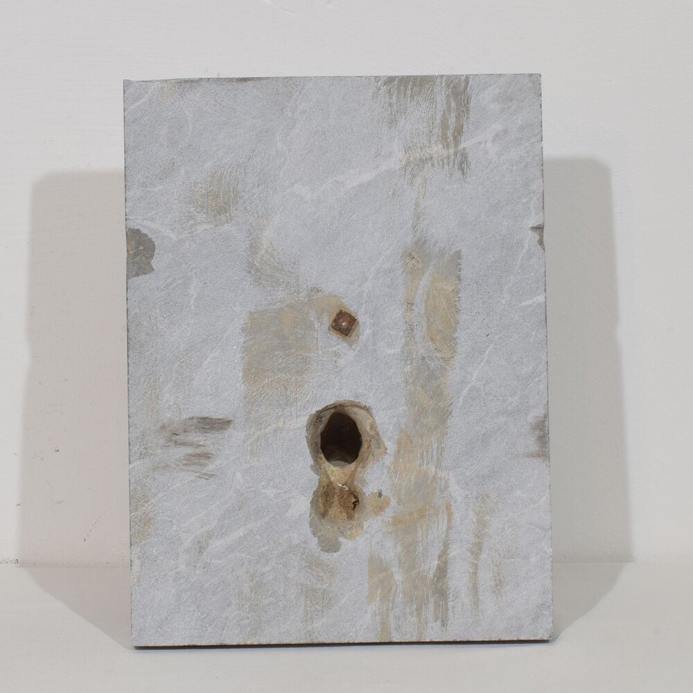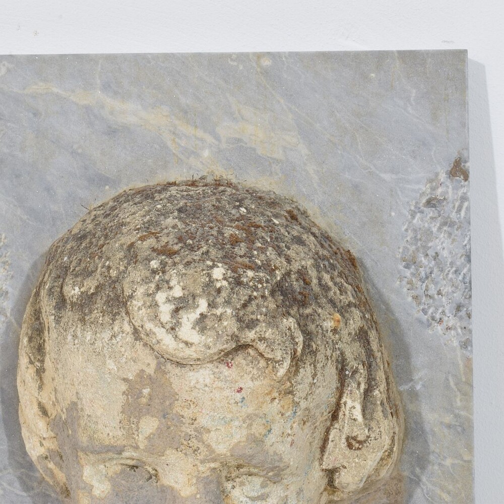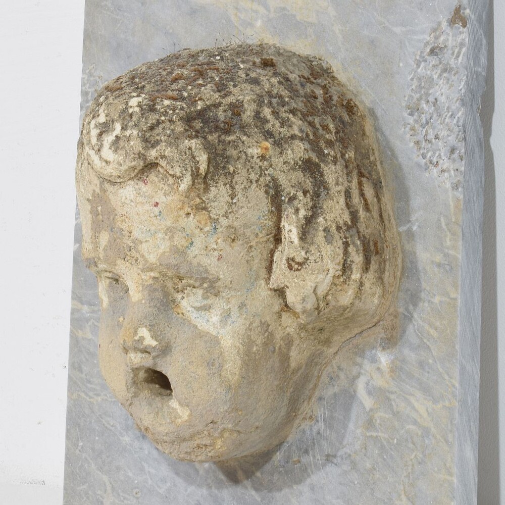 Italian 17th-18th Century Carved stone Cherub Fountain Head on Marble Panel