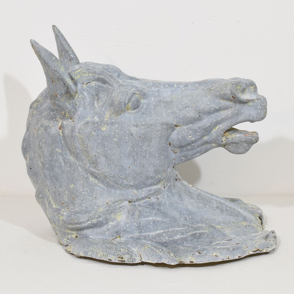 A beautiful French zinc decorative horse head trade sign from the late 19th century with great details on the mane and musculature.