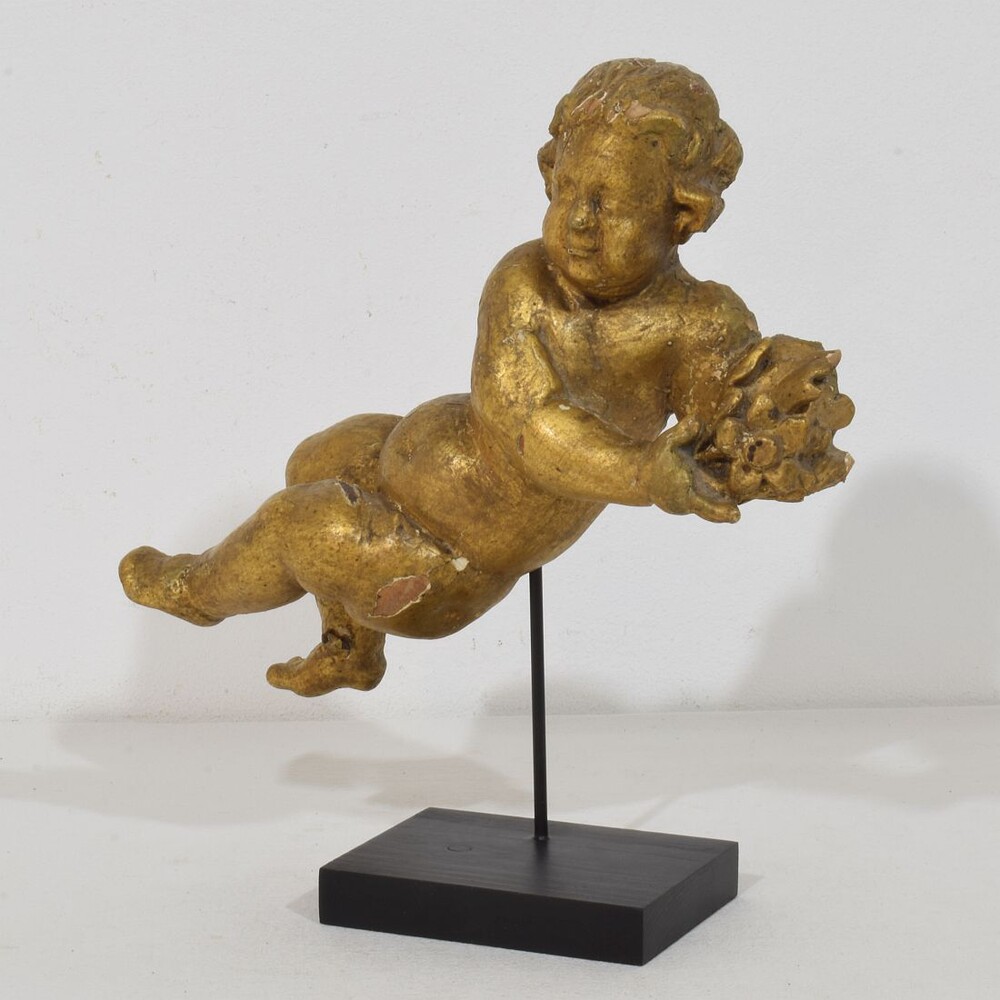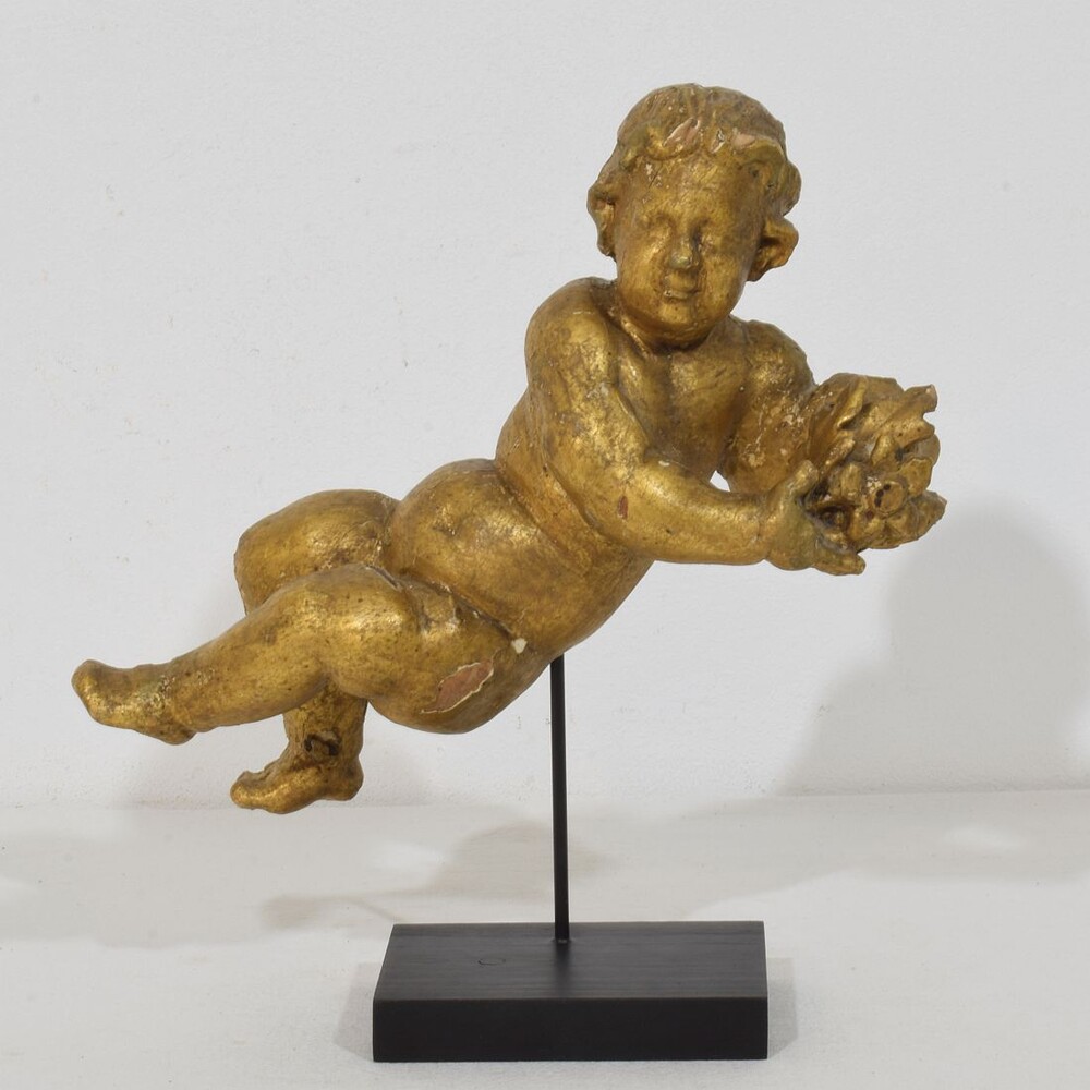 Beautiful Baroque angel. Unique period piece made out of wood . Hand-carved