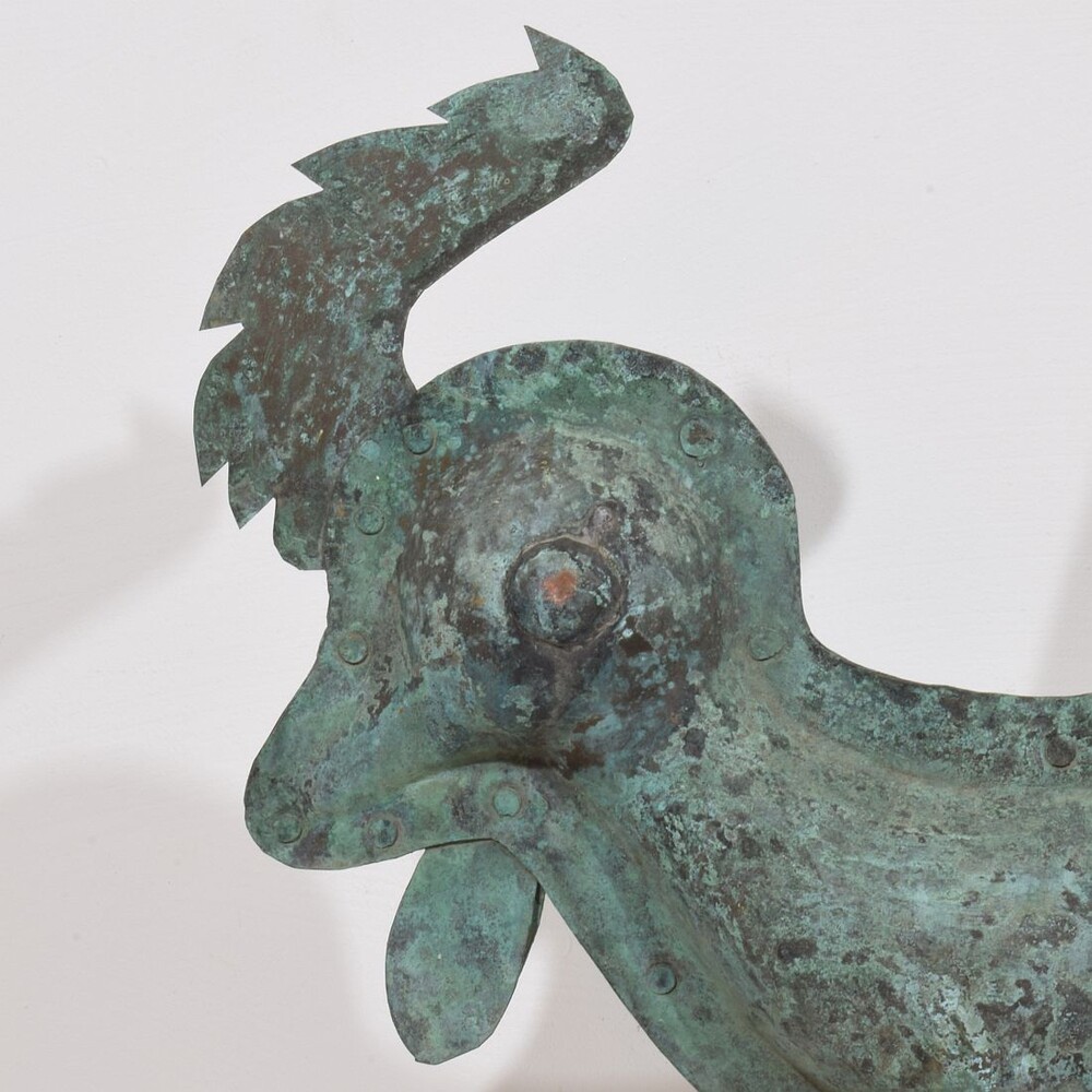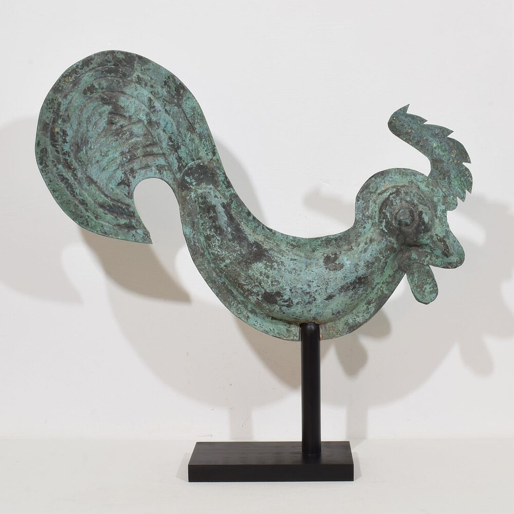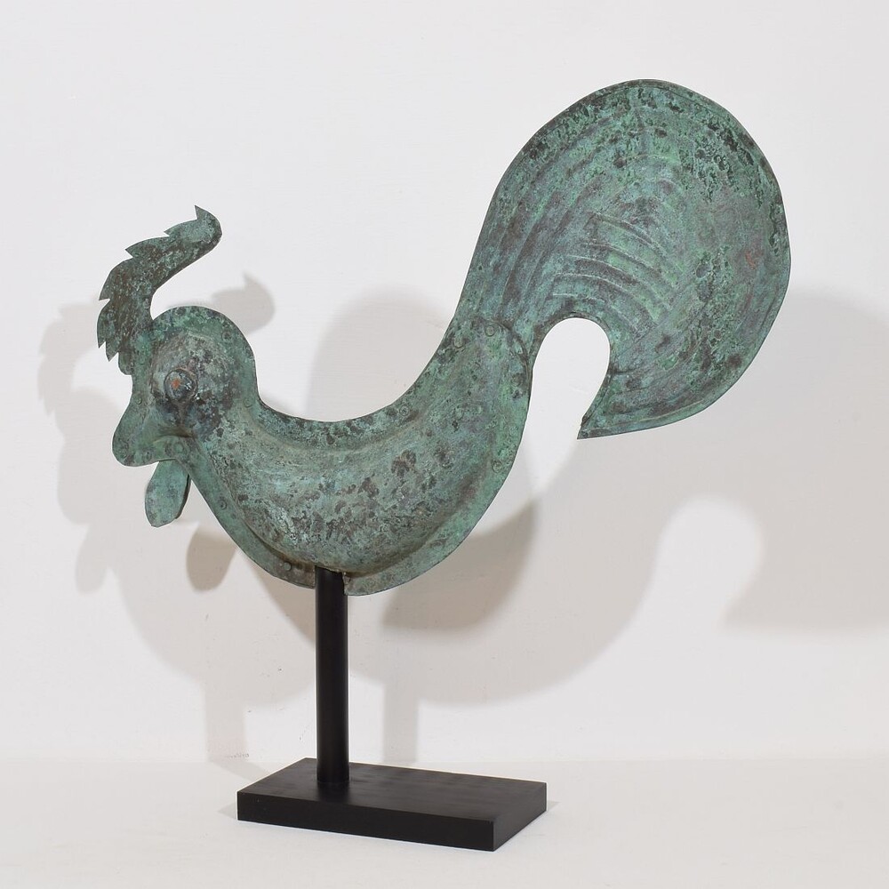 Beautiful and rare antique folk art copper rooster with an wonderful vert de gris patine. A real unique find.