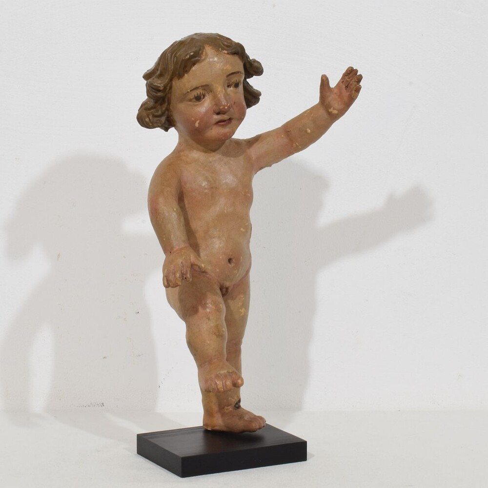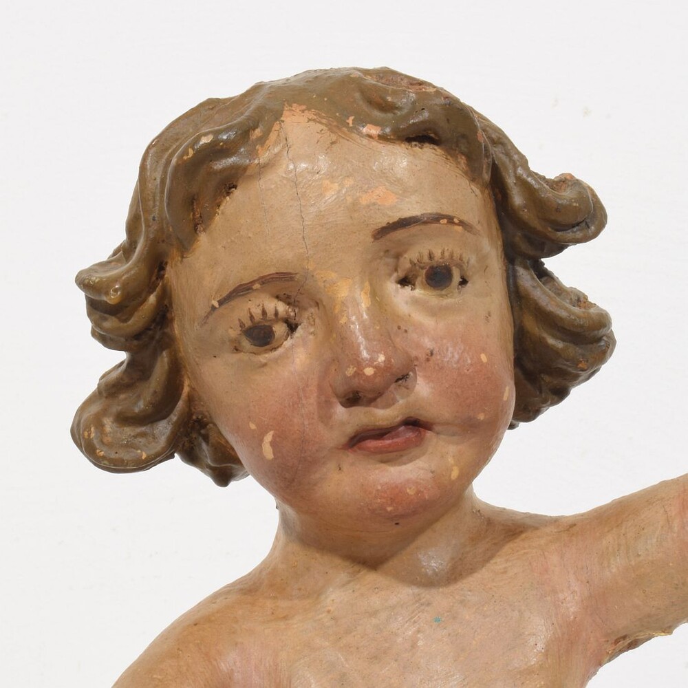Hand carved wooden baroque angel figure, Spain circa 1650-1750
