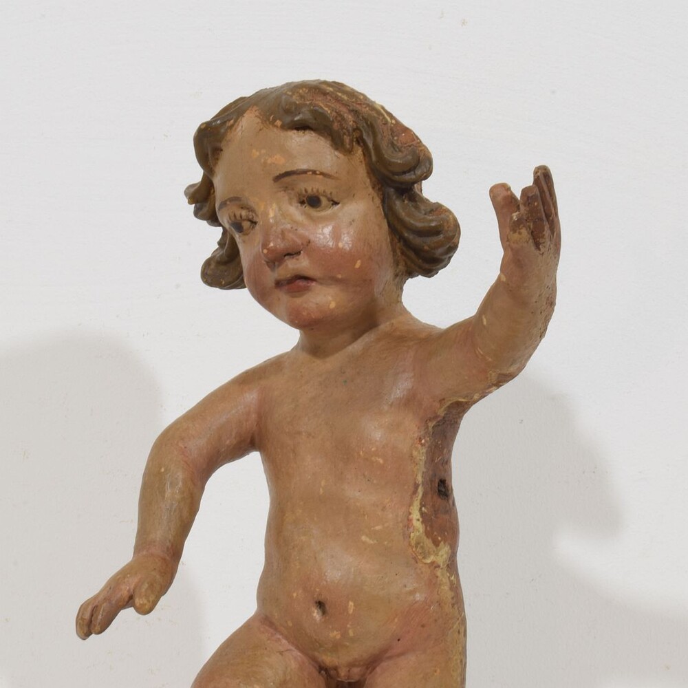 Wonderful hand carved standing Baroque angel figure. Unique period piece with its original paint .