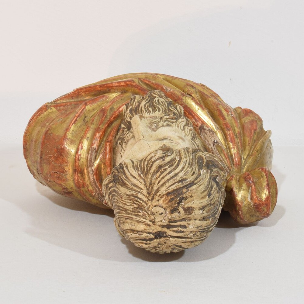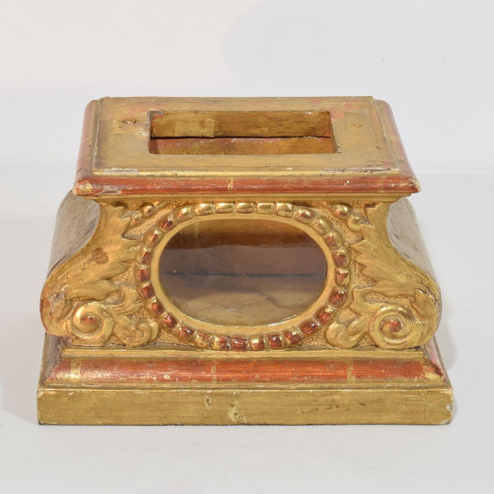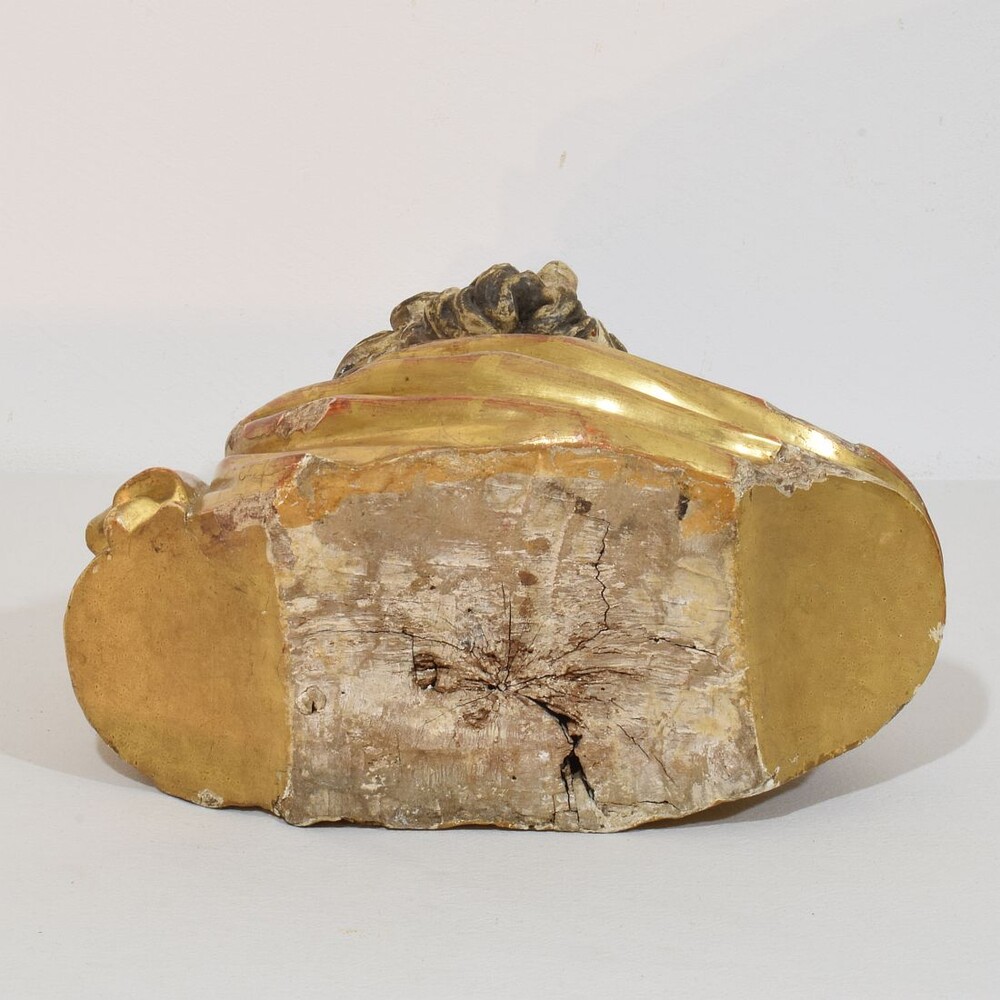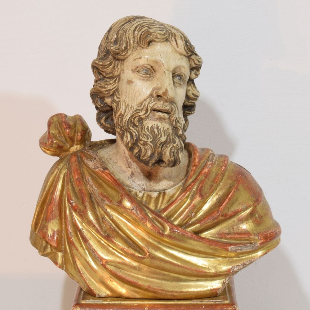 Spectacular and very decorative piece. Large hand carved wooden reliquary bust of a saint. Beautiful weathered color and gilding. Small losses/Old repairs and without the relics. Italy circa 1650-1750.