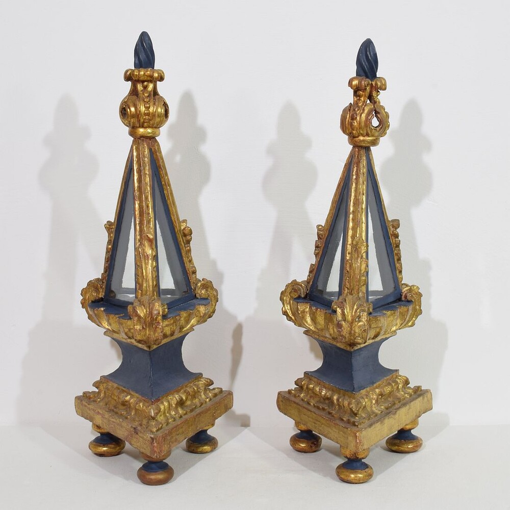 Pair baroque carved wooden reliquary shrines, Italy circa 1750