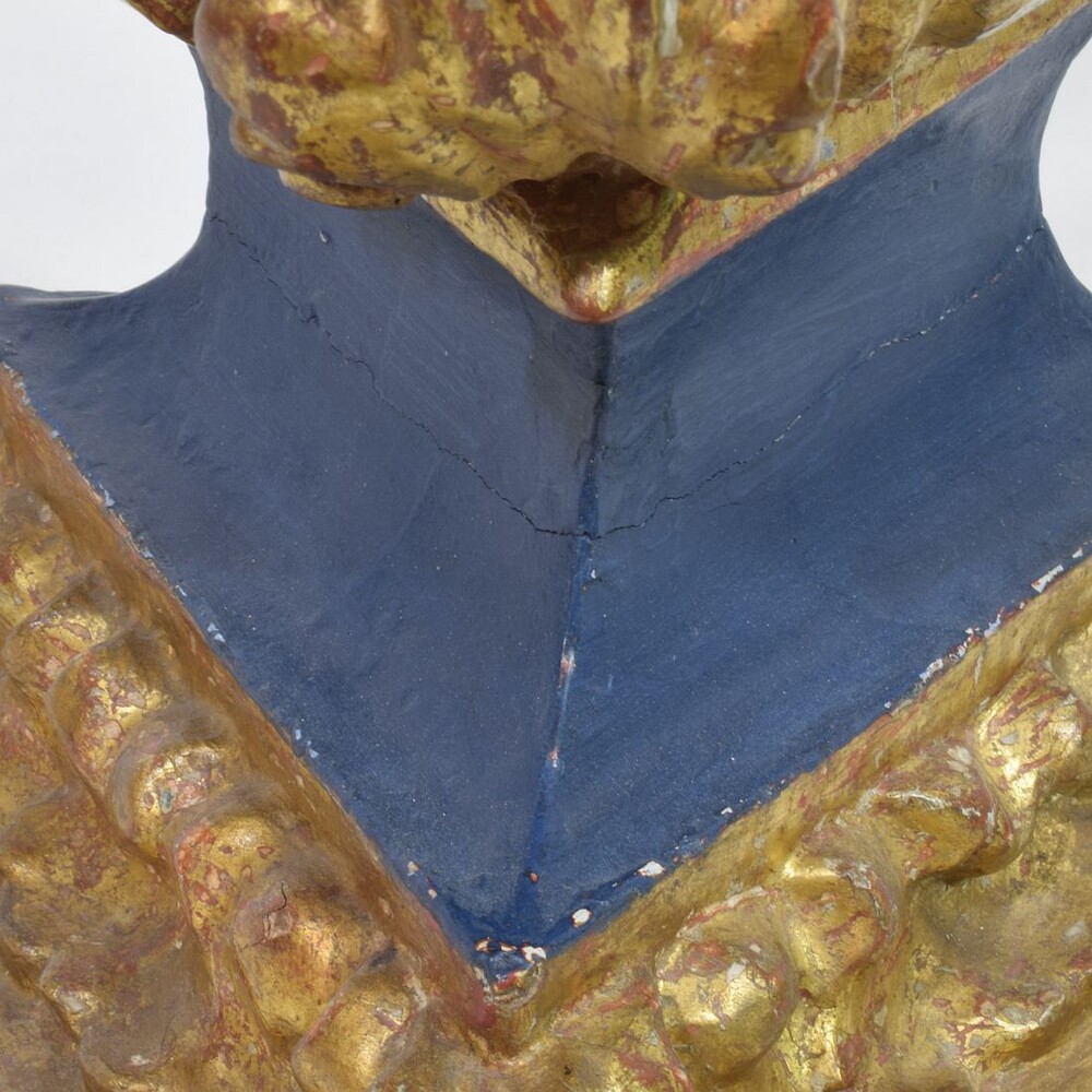 Weathered, small losses and old repairs. ( to my opinion glass once replaced)
