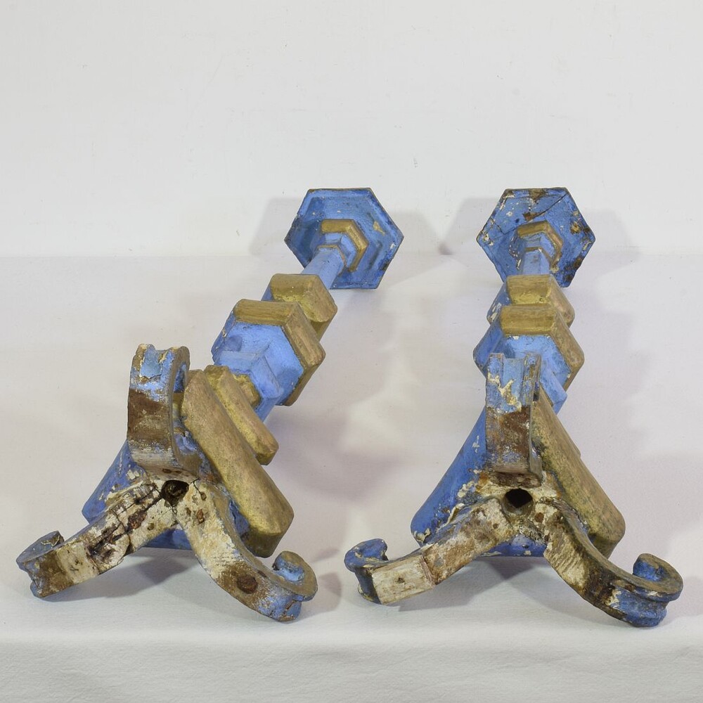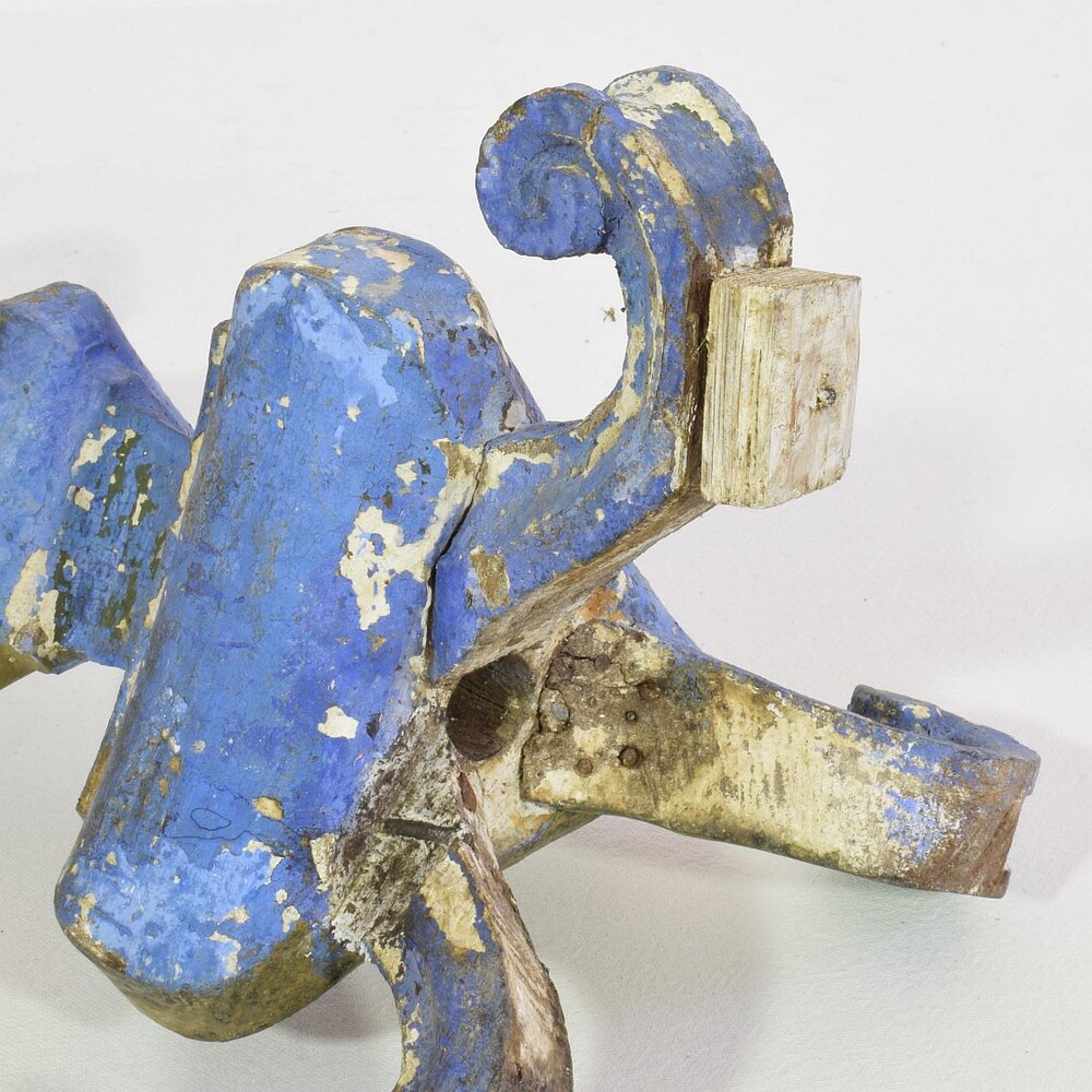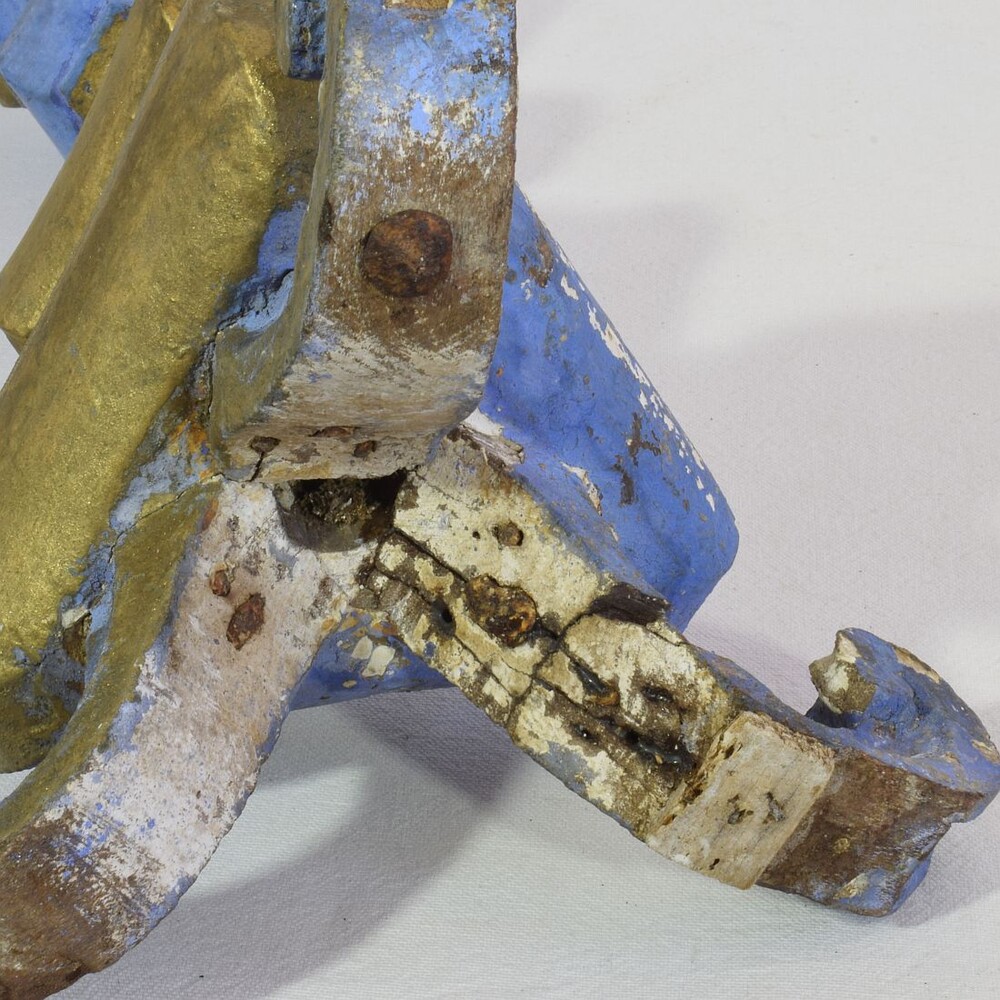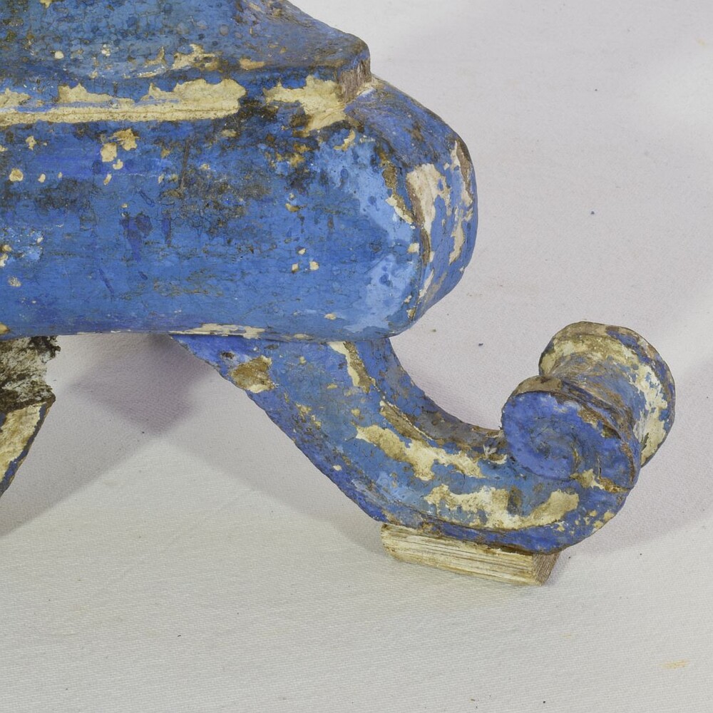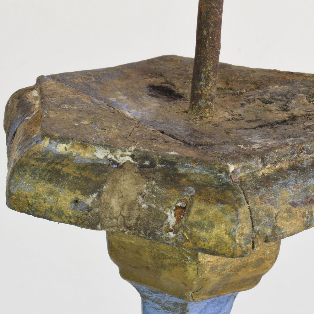 Great pair of baroque carved wooden candleholders with a stunning old color, Italy, circa 1750-1780. Weathered, repairs and losses. Measurement individual.for sale in Candleholders & Lighting | Tresors Trouves