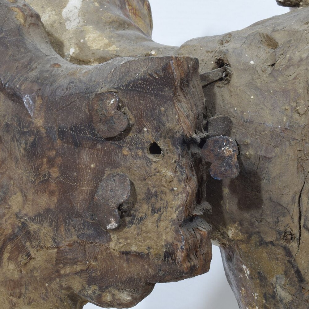 Early hand carved wooden baroque angel, Spain circa 1650-1700