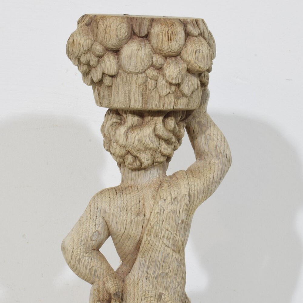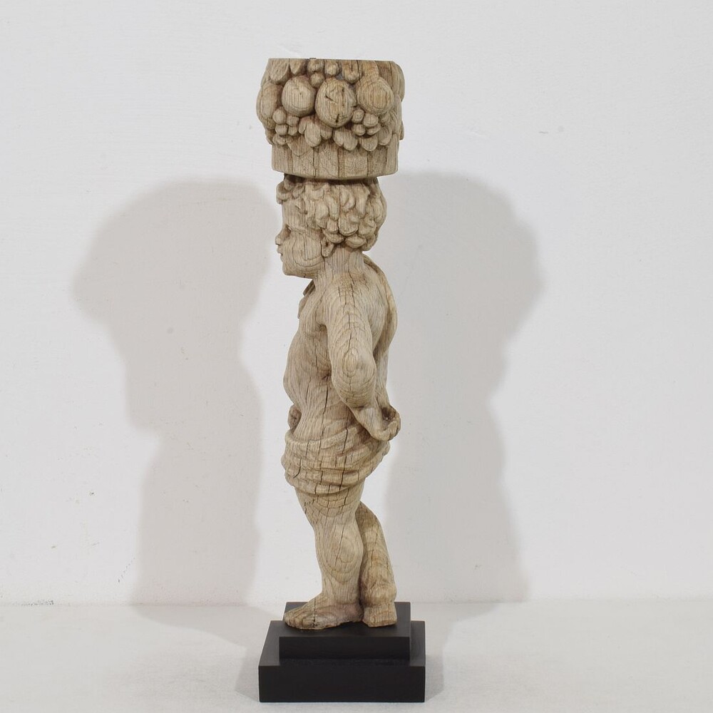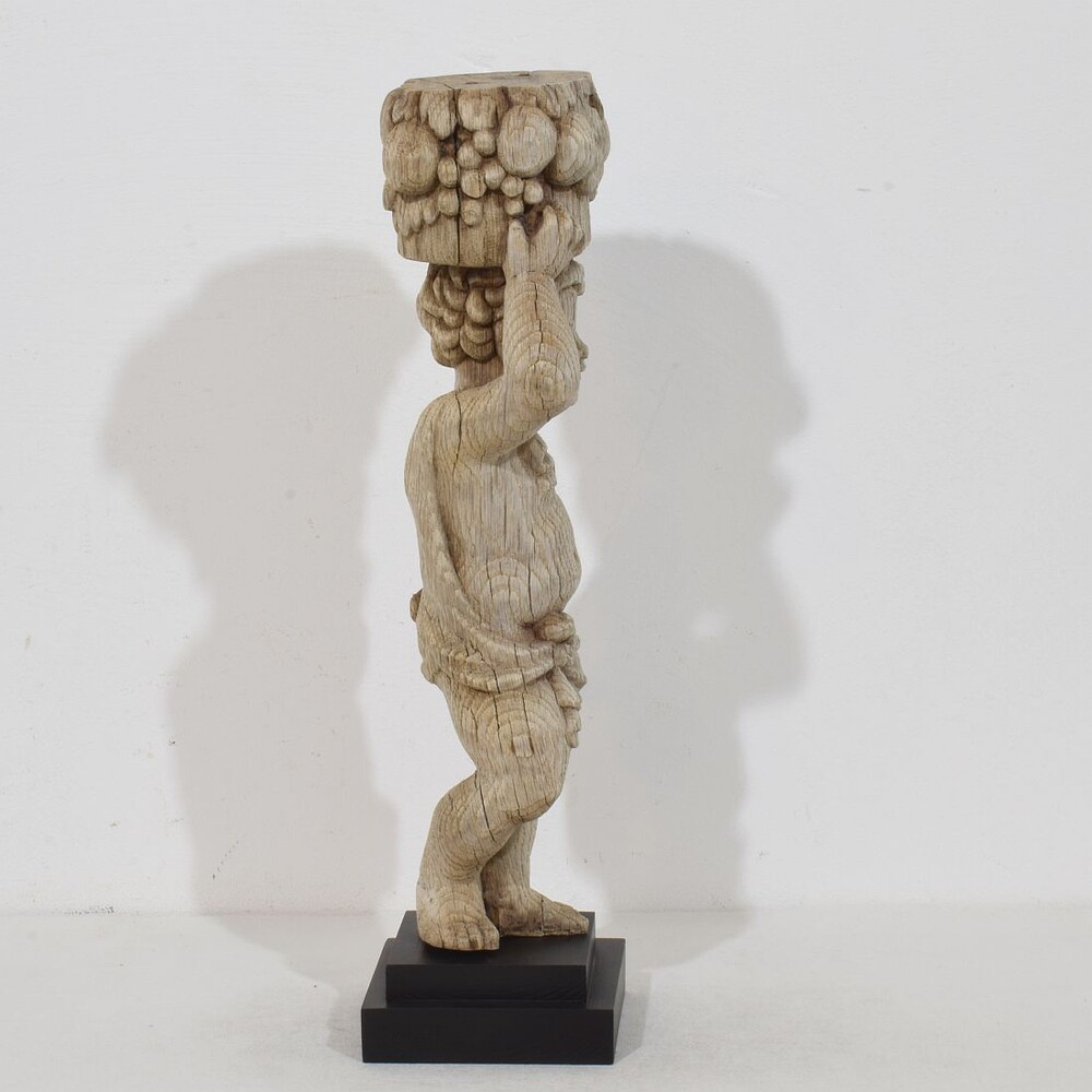 Wonderful period piece. Beautiful weathered baroque hand carved oak caryatid figure carrying a fruit basket.