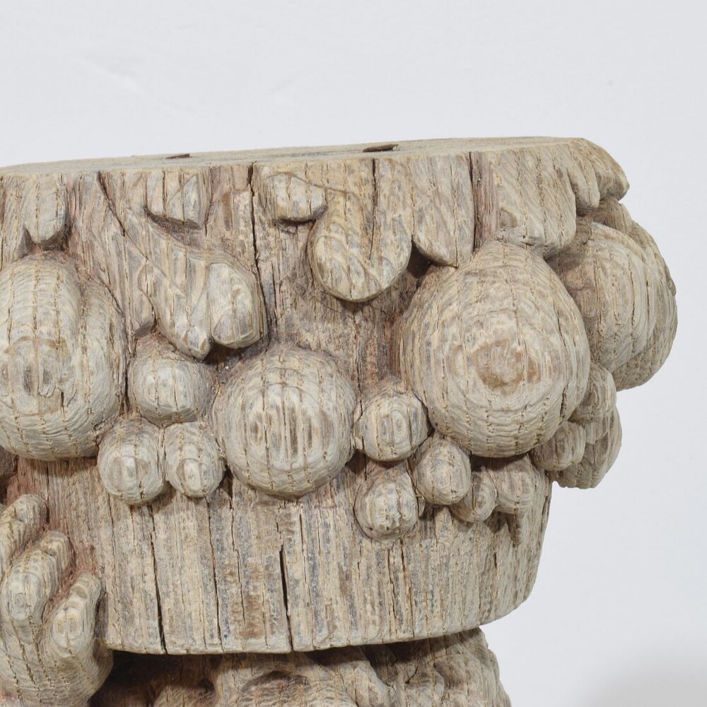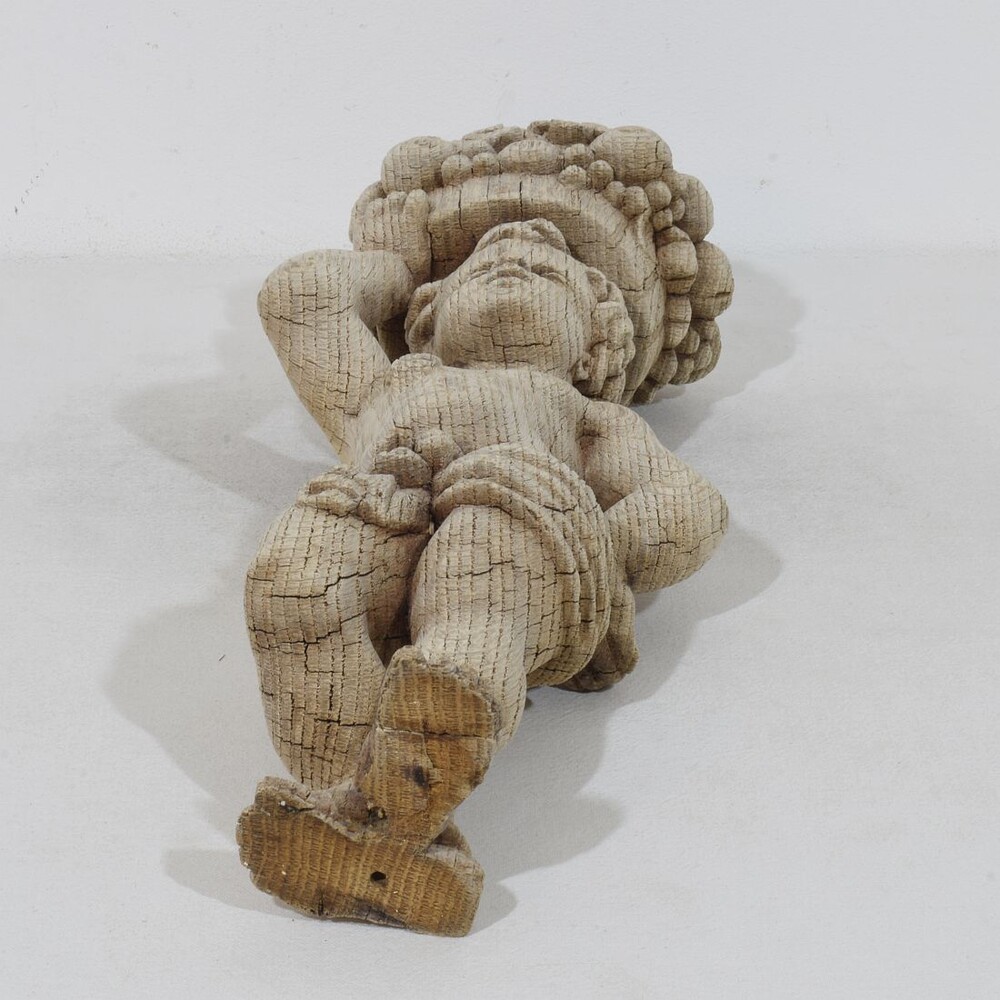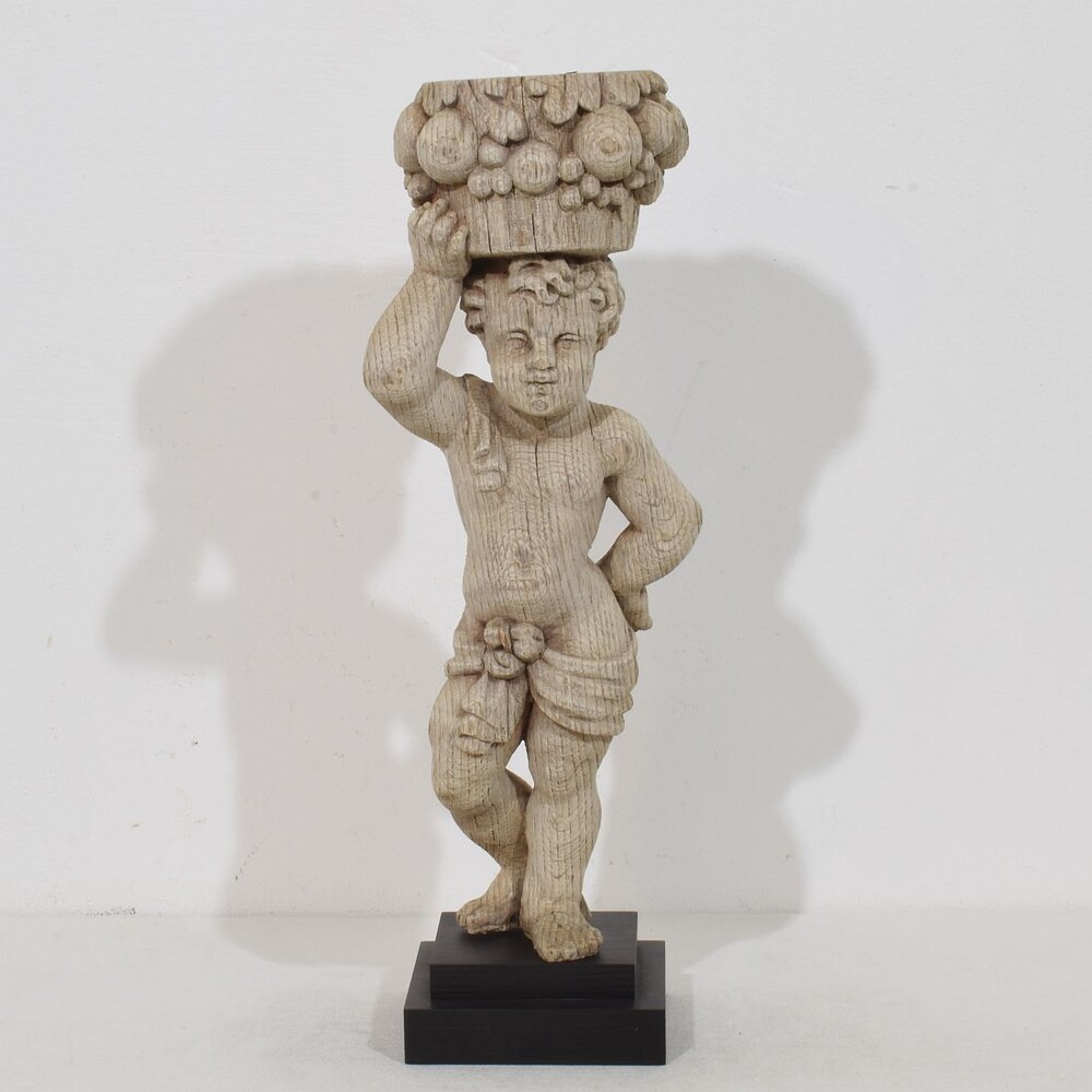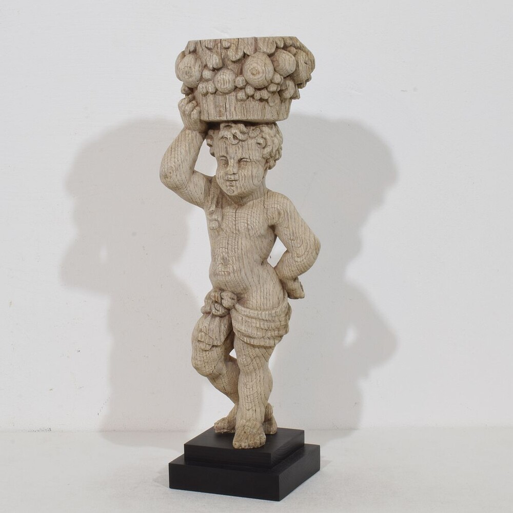 Wonderful period piece. Beautiful weathered baroque hand carved oak caryatid figure carrying a fruit basket.