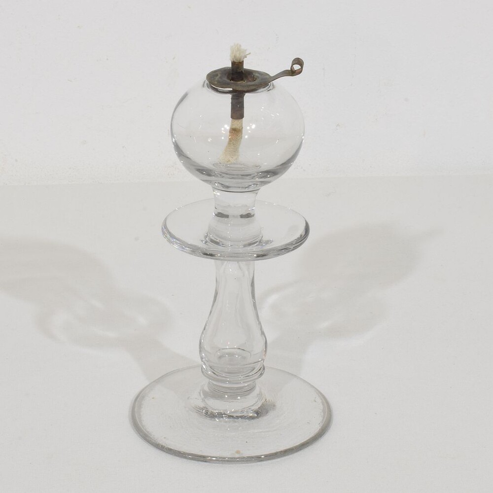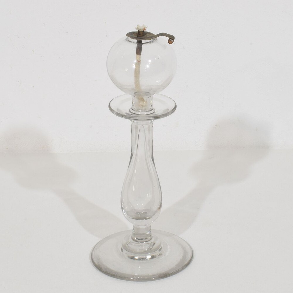 Rare collection of three hand blown glass weaver oil lamps from the South of France, France, circa 1800-1900