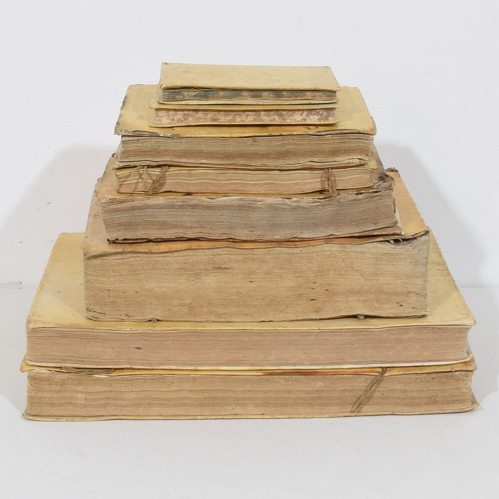 Amazing collection of 8 extremely weathered vellum books, Spain/Italy 17th/ 19th century.