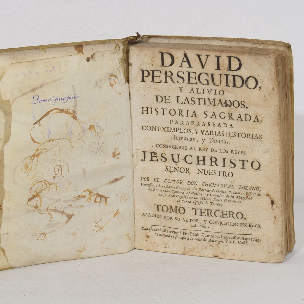 Nice collection of five extremely weathered vellum books, Spain 18th/ 19th century. Weathered ,small losses and old repairs, H:20-21cm W:2,5-4,5cm D:15,5cm. for sale in Miscellaneous | Tresors Trouves