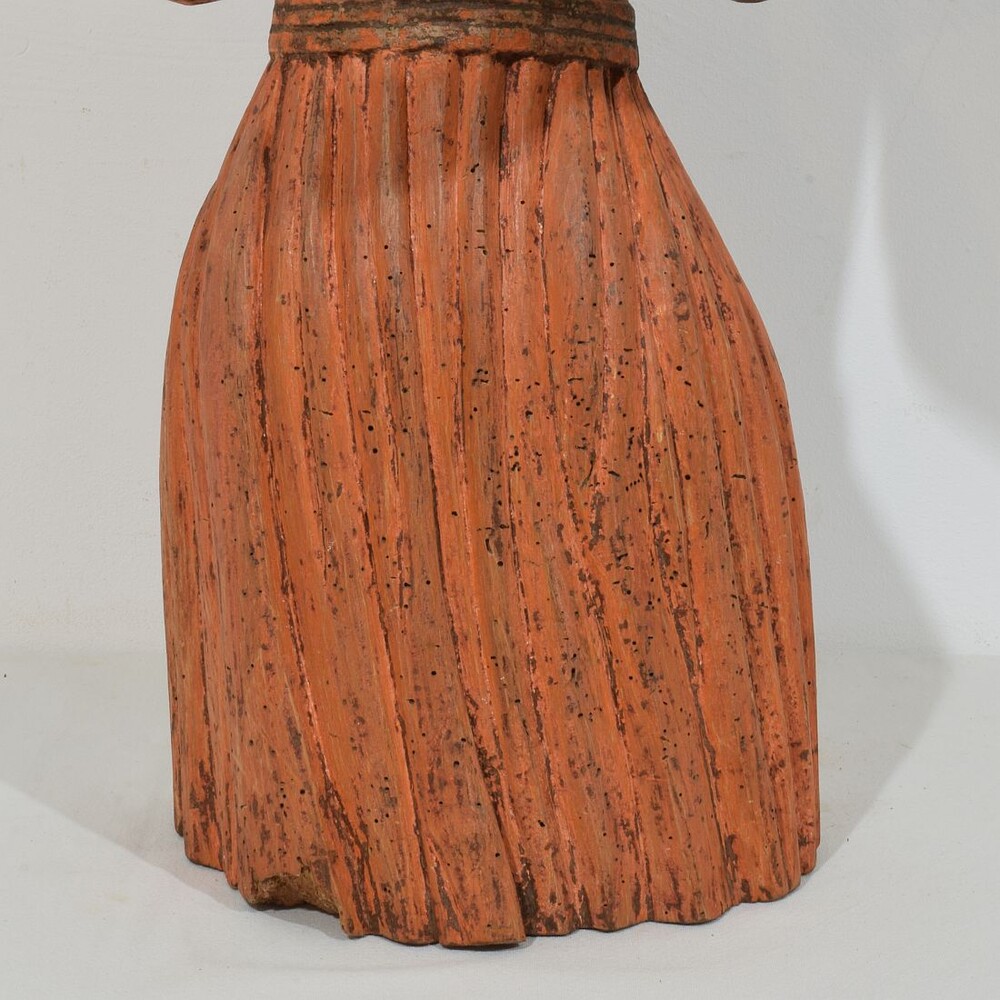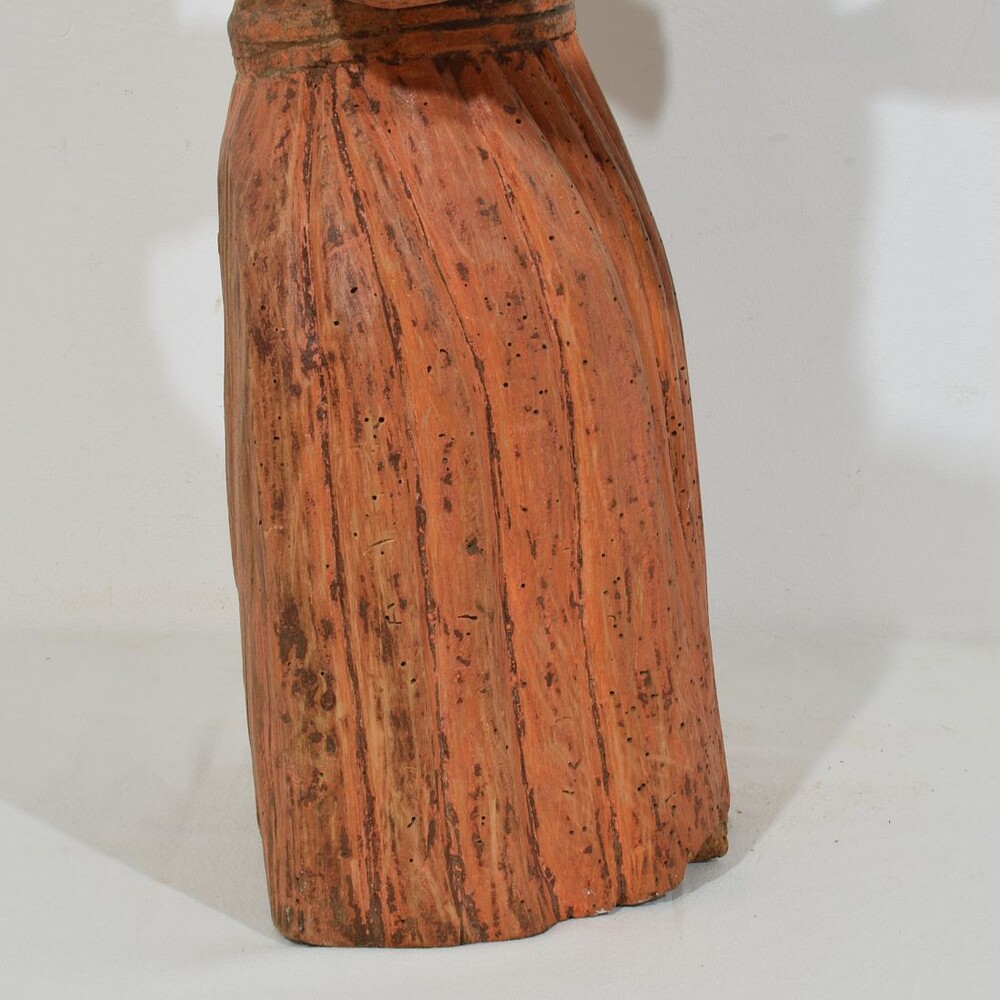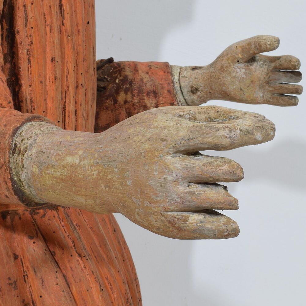 Unique and extremely rare medieval wooden Madonna with traces of her original color
